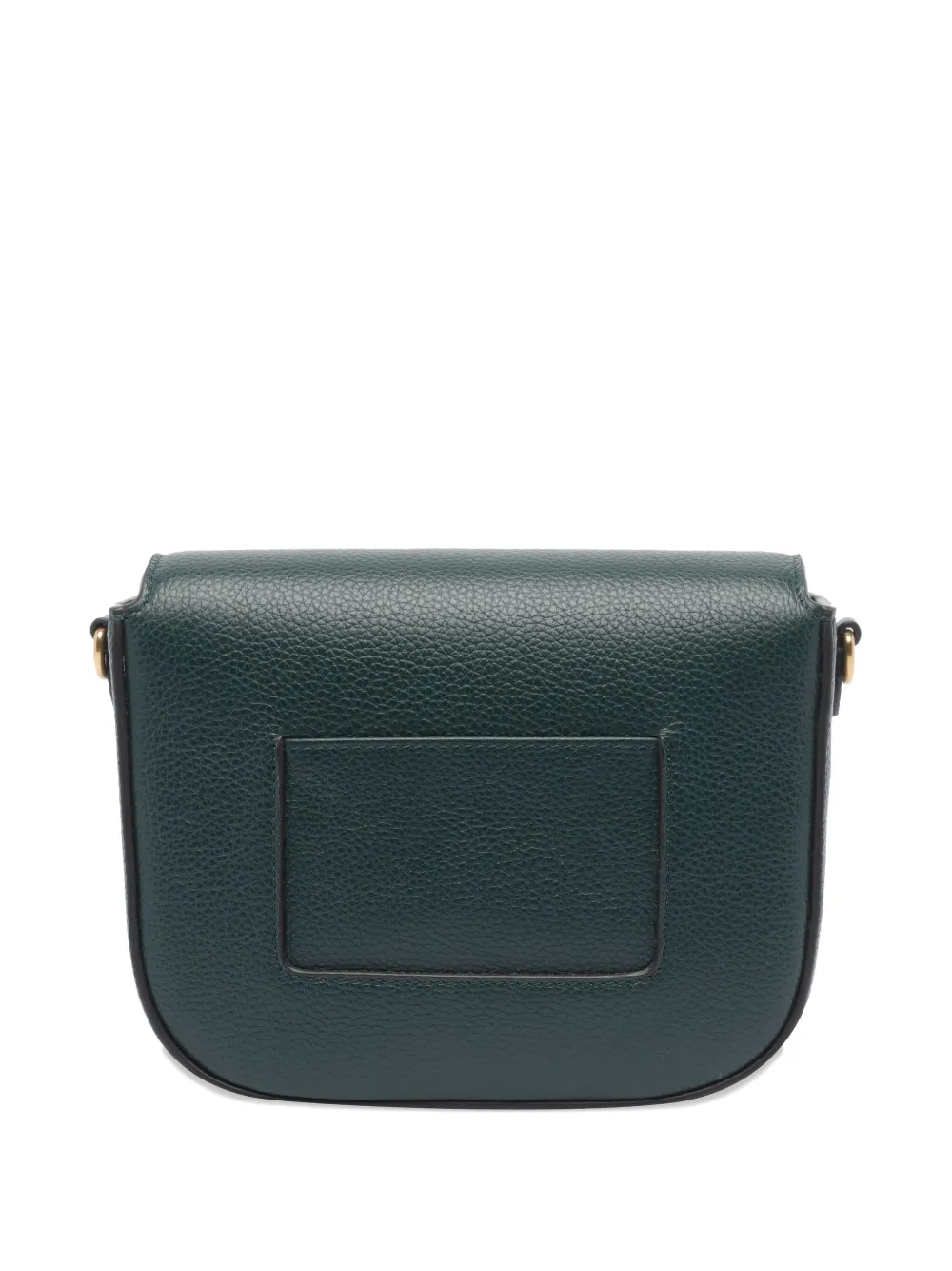 Темно-зеленая фурнитура золотистого оттенка, бляшка с логотипом спереди, регулируемый плечевой ремень, магнитная застежка