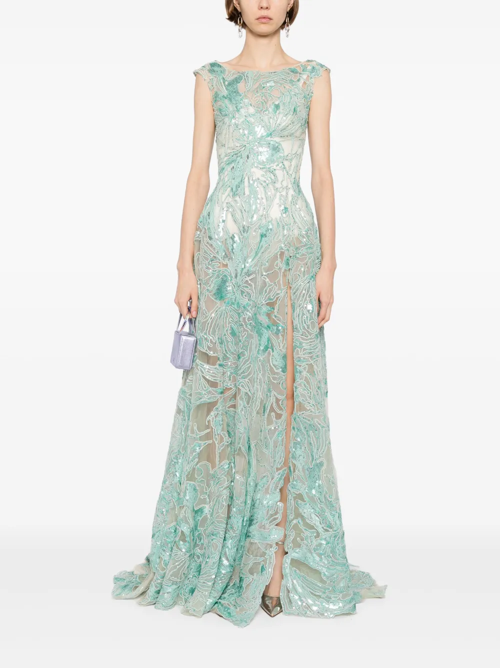 Вышитое длинное платье Saiid Kobeisy, зеленый 485 993₽