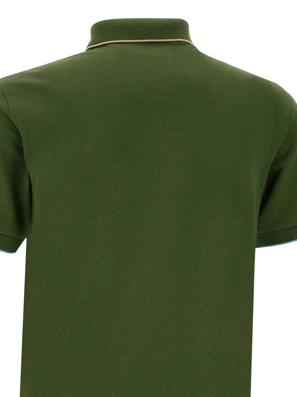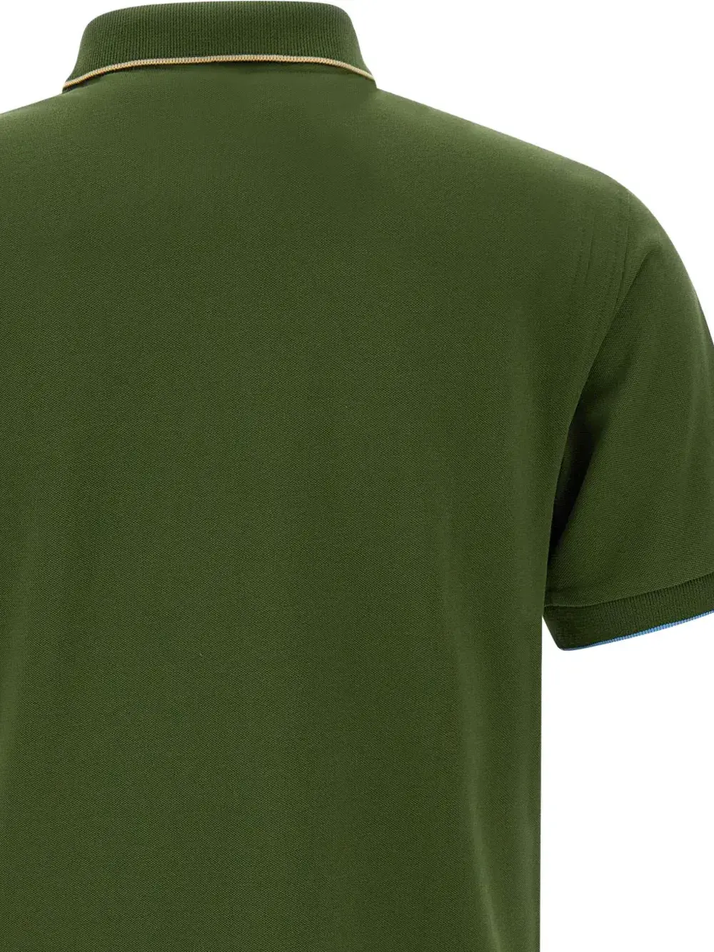 Оливково-зеленый вышитый логотип, планка с пуговицами, короткие рукава