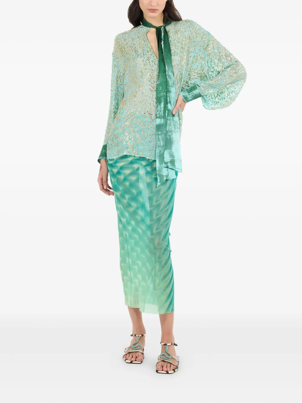 Шелковая блузка Roberto Cavalli, зеленый 97 905₽
