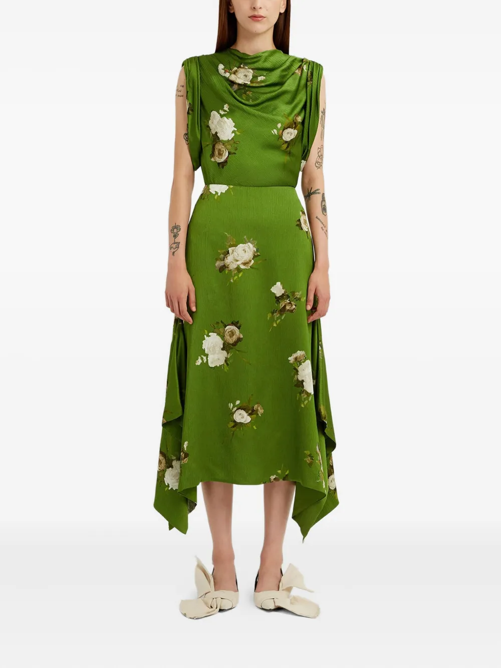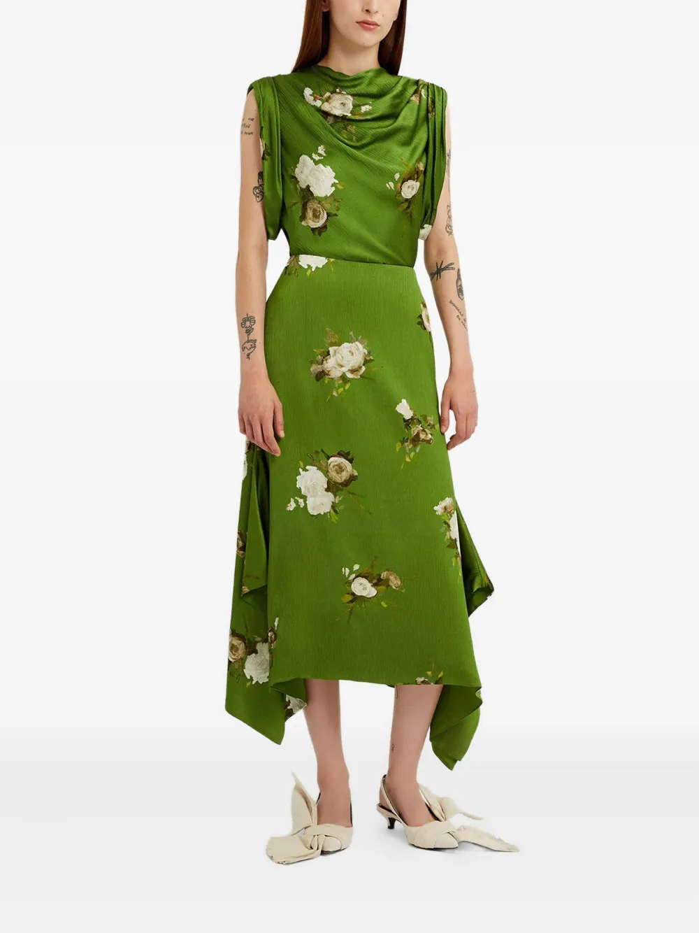 Топ с воротником-хомутом и принтом ERDEM, зеленый