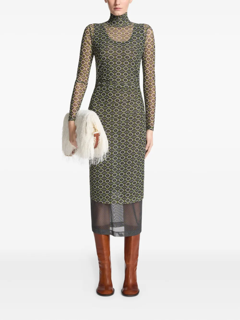 Сетчатое платье с высоким воротником и принтом DRIES VAN NOTEN, зеленый