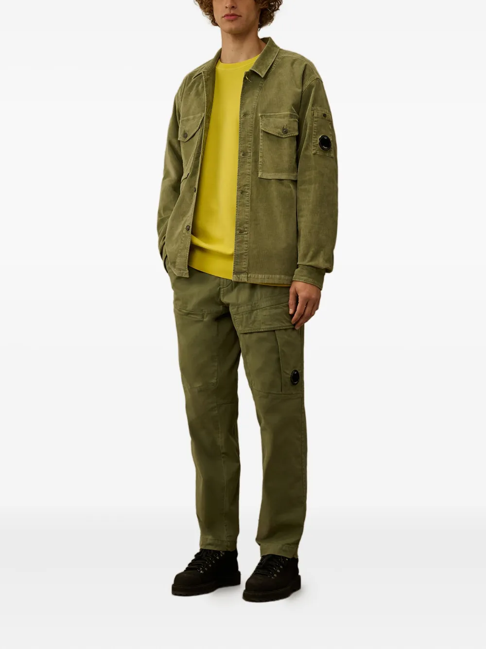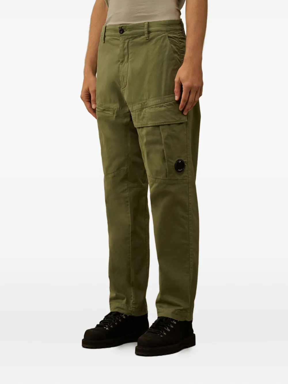 Оливково-зеленый, множество карманов-карго, хлопковый крой, прямой брючин, застежка на пуговицы, вшитые детали. Компания CP Company рекомендует снимать все съемные аксессуары перед стиркой.