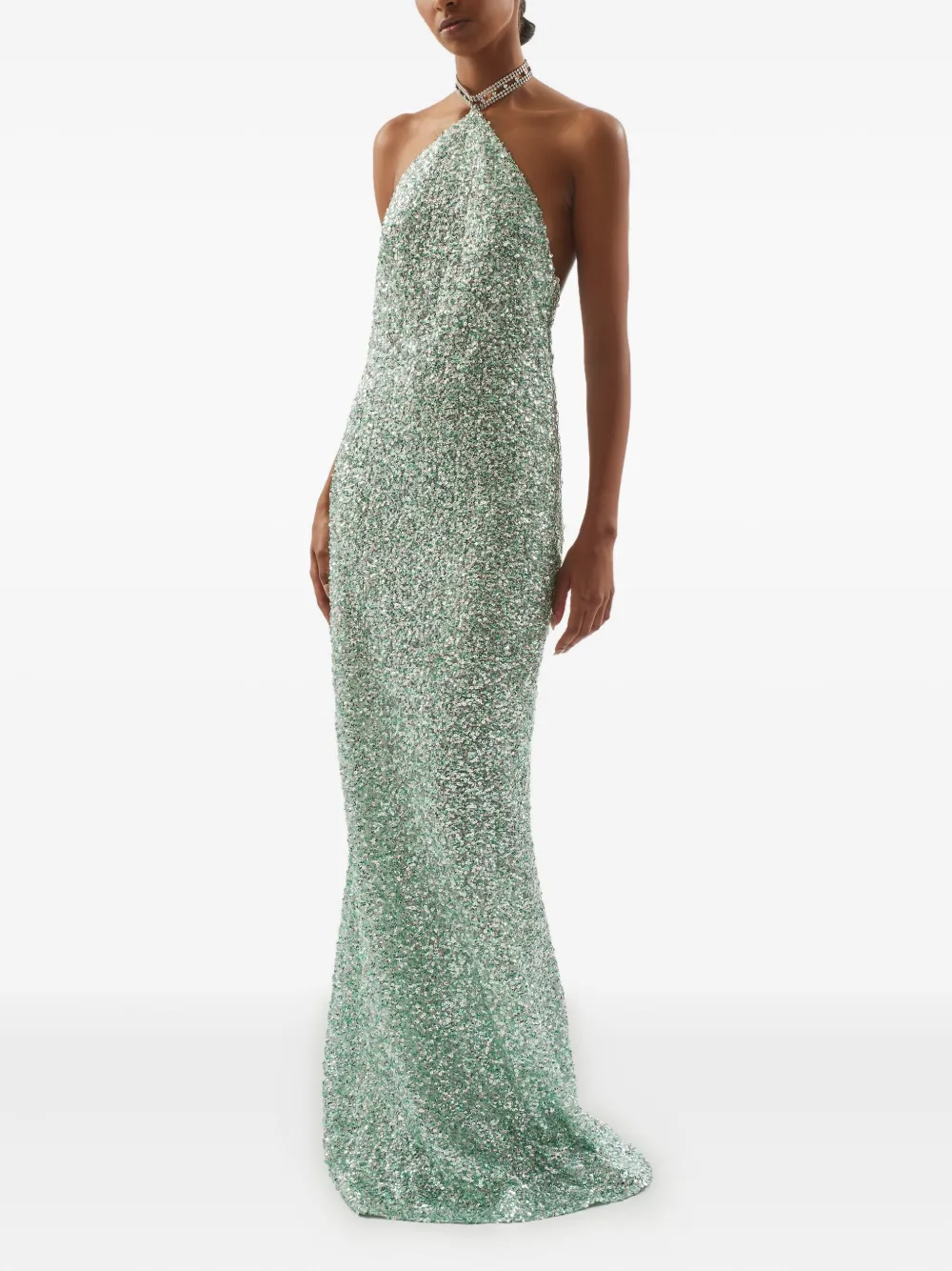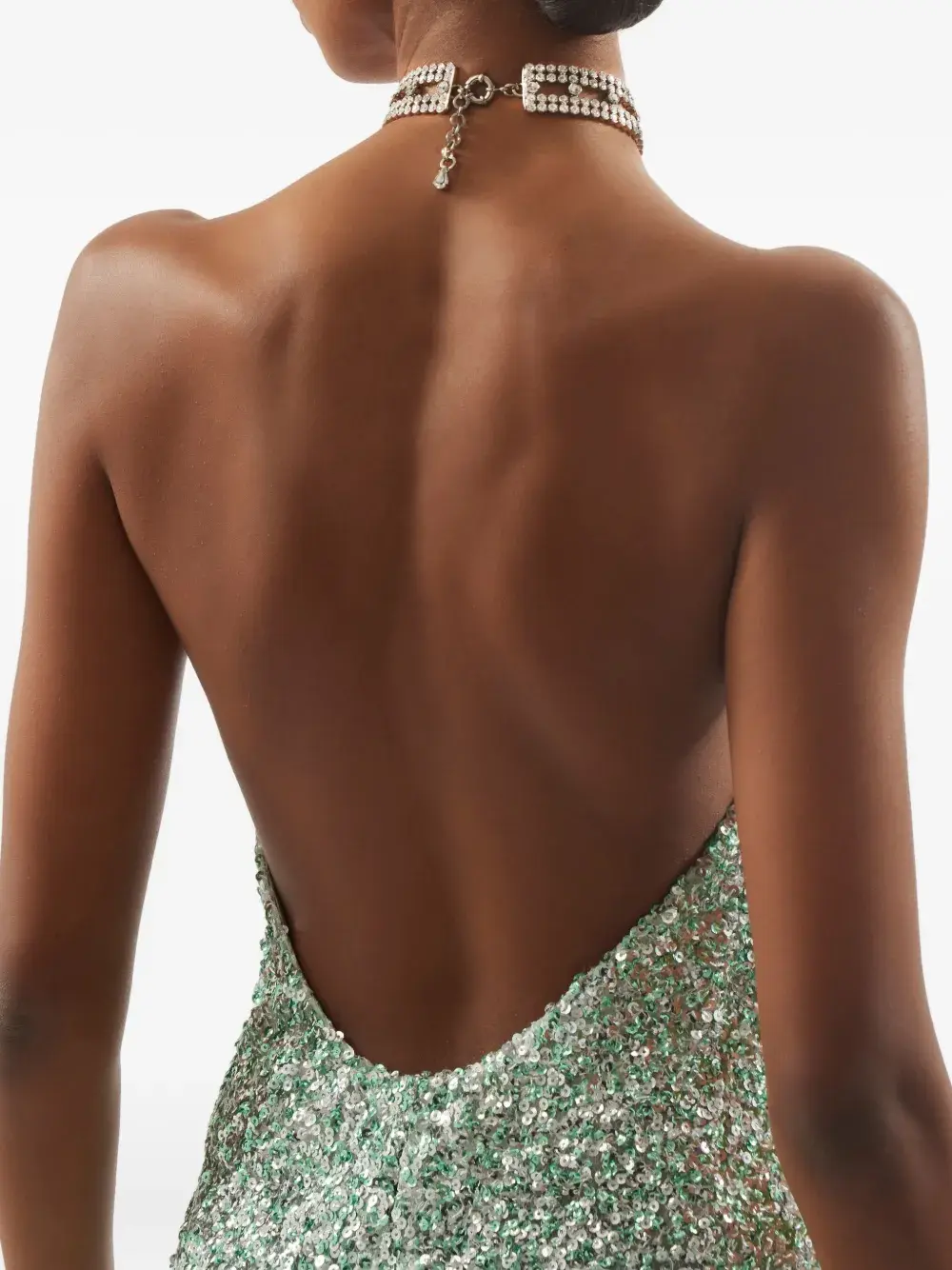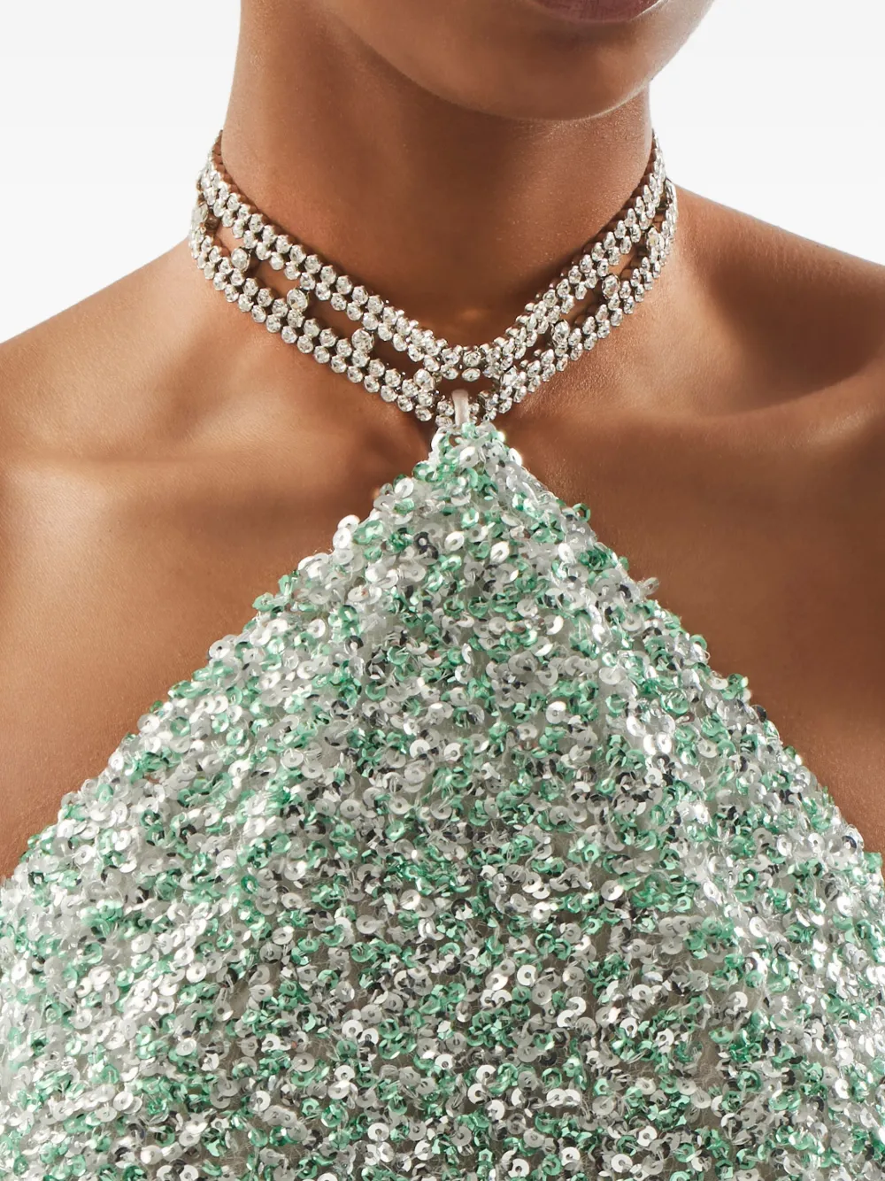 Мятно-зеленый, украшенный пайетками, воротник-халтер с открытой спиной, украшенный кристаллами, чокер длиной до пола