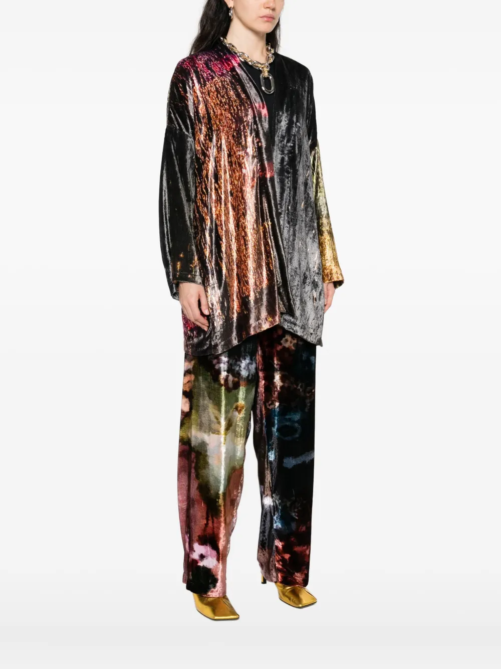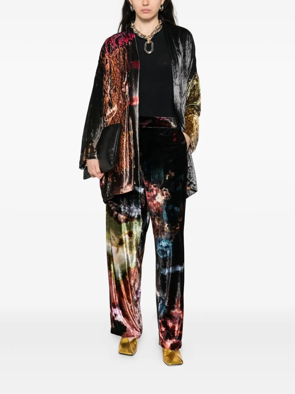 Черный металлический эффект, открытая передняя часть, рукава три четверти, узорчатая внутренняя вставка