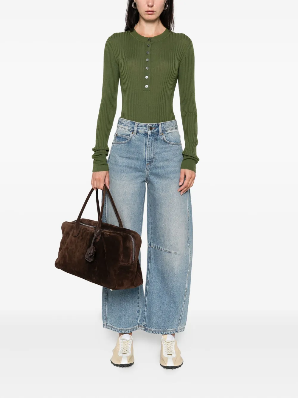 Топ в рубчик на пуговицах Soeur, зеленый