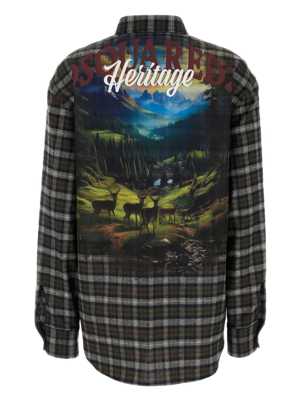 Рубашка с канадским клетчатым принтом и пейзажным рисунком DSQUARED2, зеленый 29 979₽