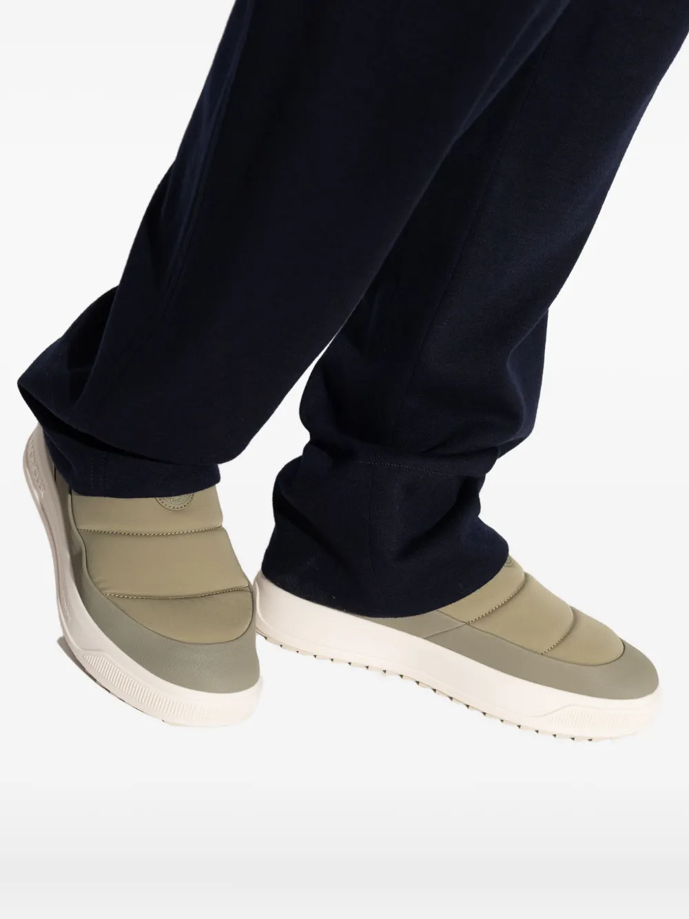Шалфейно-зеленая стеганая отделка, дизайн без застежки, мягкий воротник, резиновая подошва, логотип