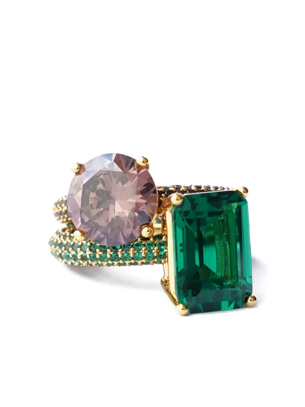 Подробнее о товаре: • зеленый • закрепка паве • переработанная латунь с покрытием из 18-каратного золота • драгоценный камень огранки «изумруд» • переработанная латунь • Повседневное использование и воздействие внешних факторов могут уменьшить блеск драгоценных камней и поверхностей, покрытых золотом. Для ухода используйте специальные неабразивные средства, предназначенные для чистки ювелирных изделий.