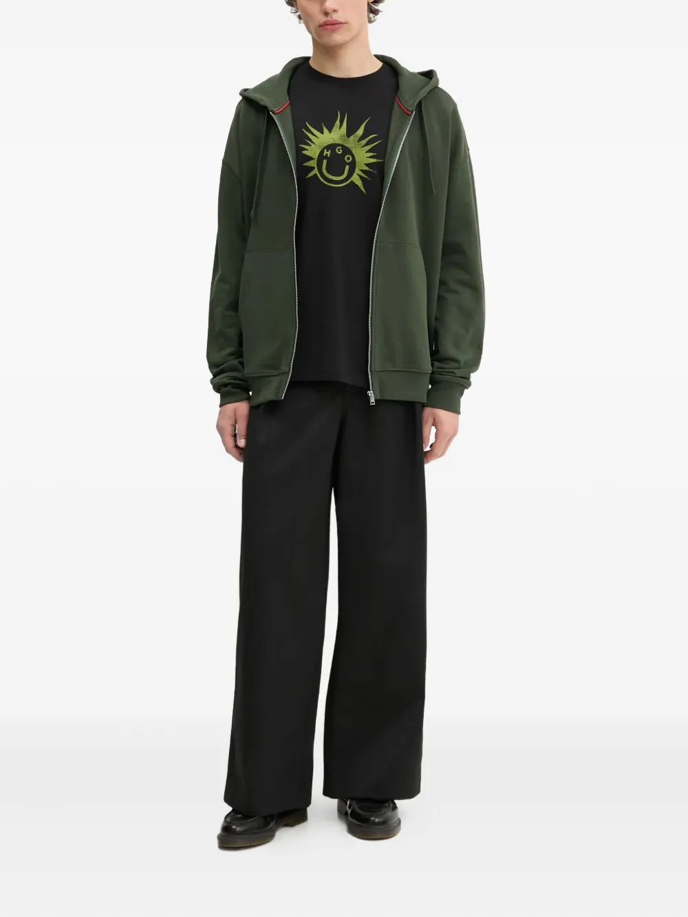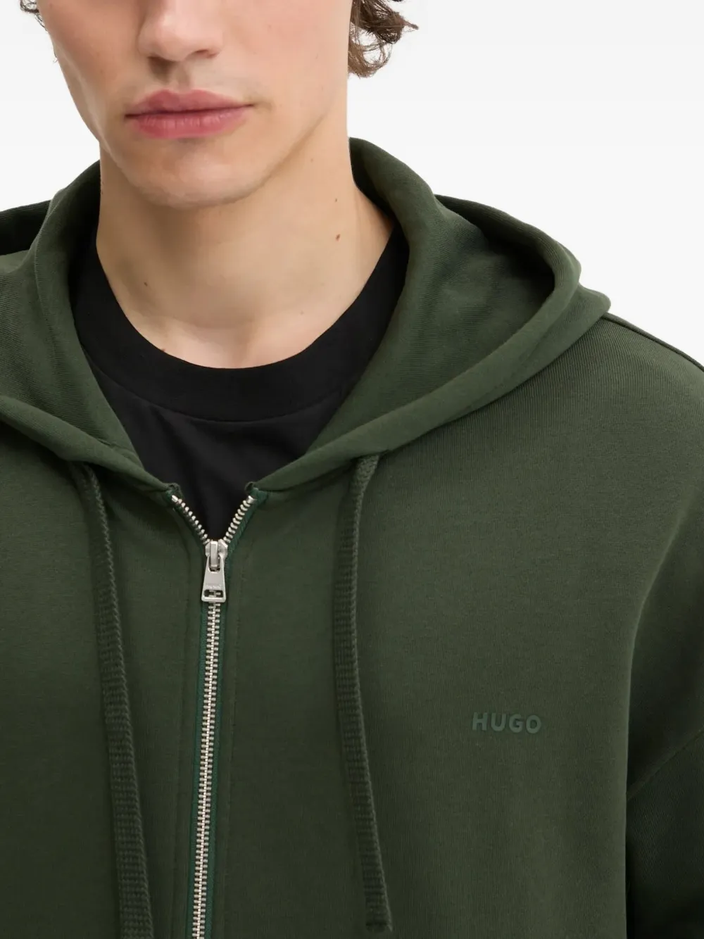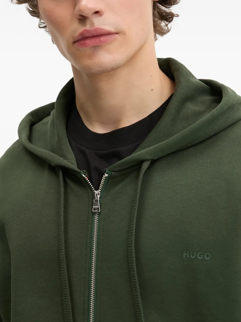 Худи на молнии с вышитым логотипом HUGO, зеленый