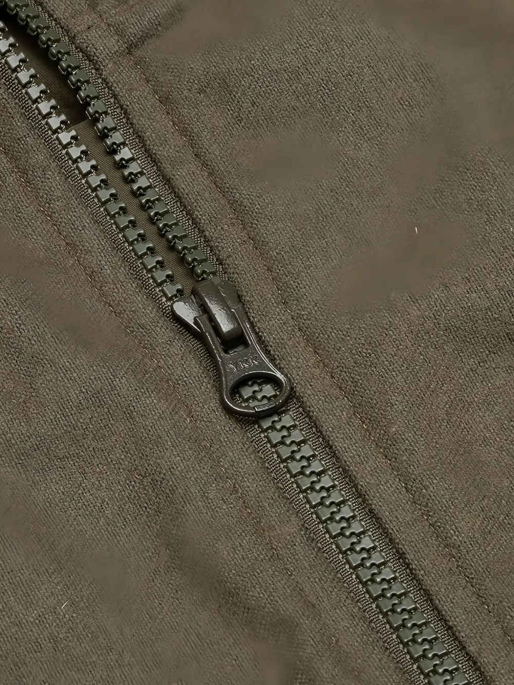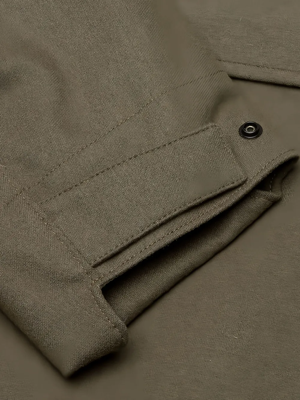 Съемный капюшон цвета милитари-зеленый, застежка-молния, карманы с клапанами, регулируемые манжеты, нашивка с логотипом