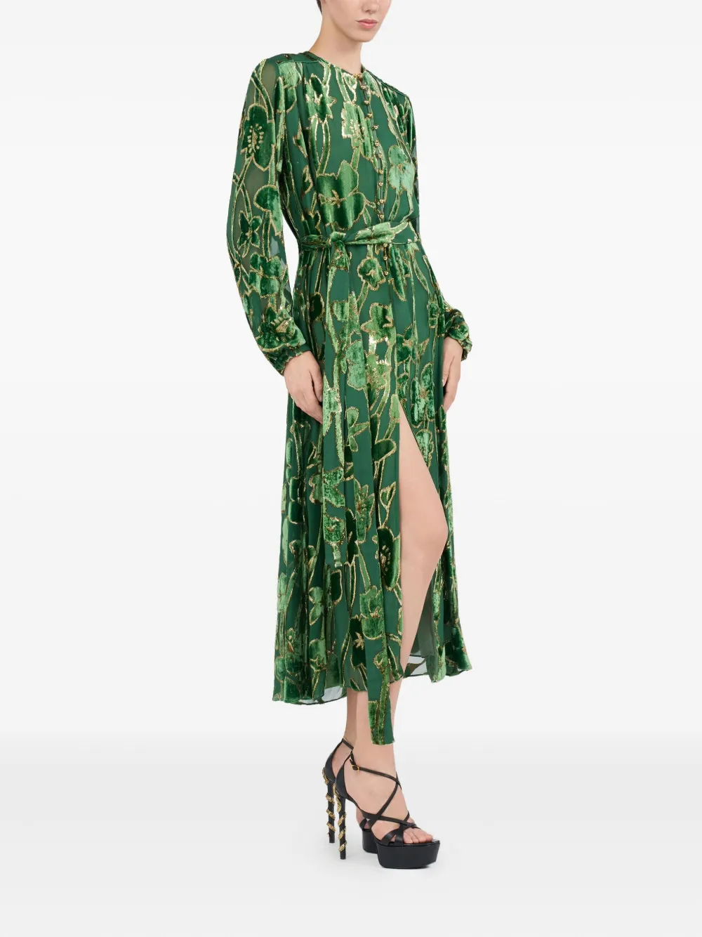 Бархатное платье миди с цветочным принтом Roberto Cavalli, зеленый