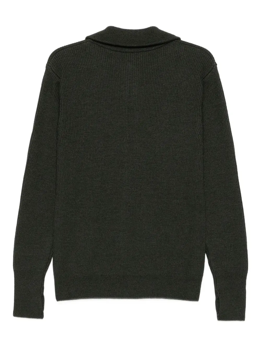 Армейский зеленый, ребристая текстура, застежка-молния, высокий ворот, длинные рукава, натуральная шерсть