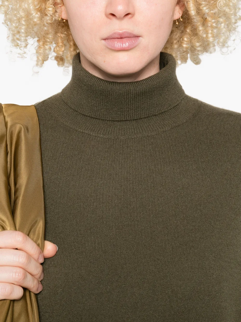 Водолазка цвета хаки с длинными рукавами и прямым подолом из кашемира