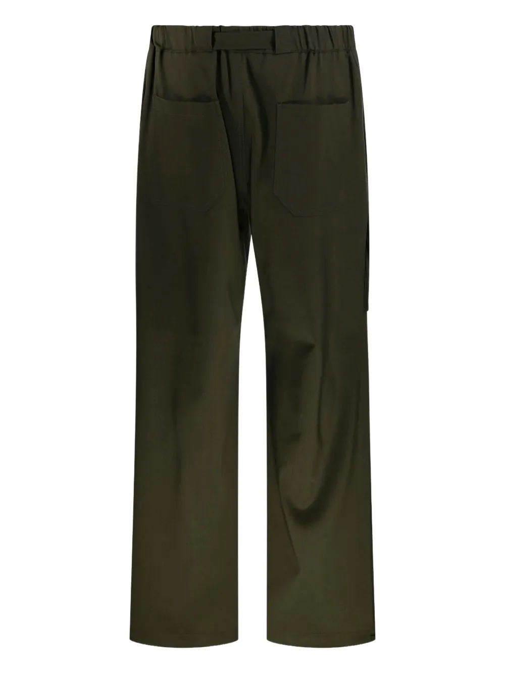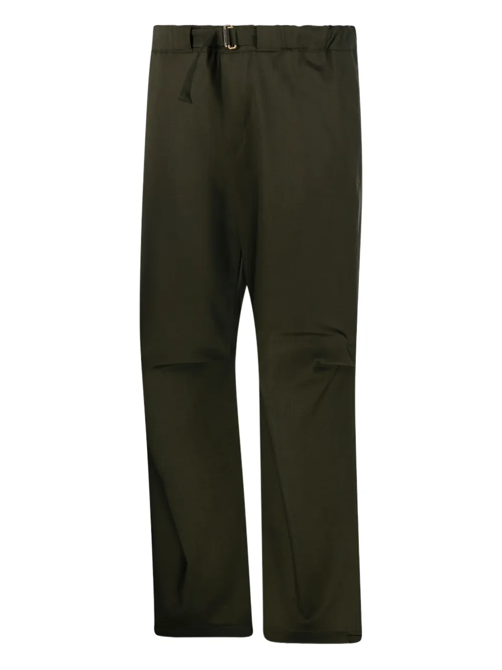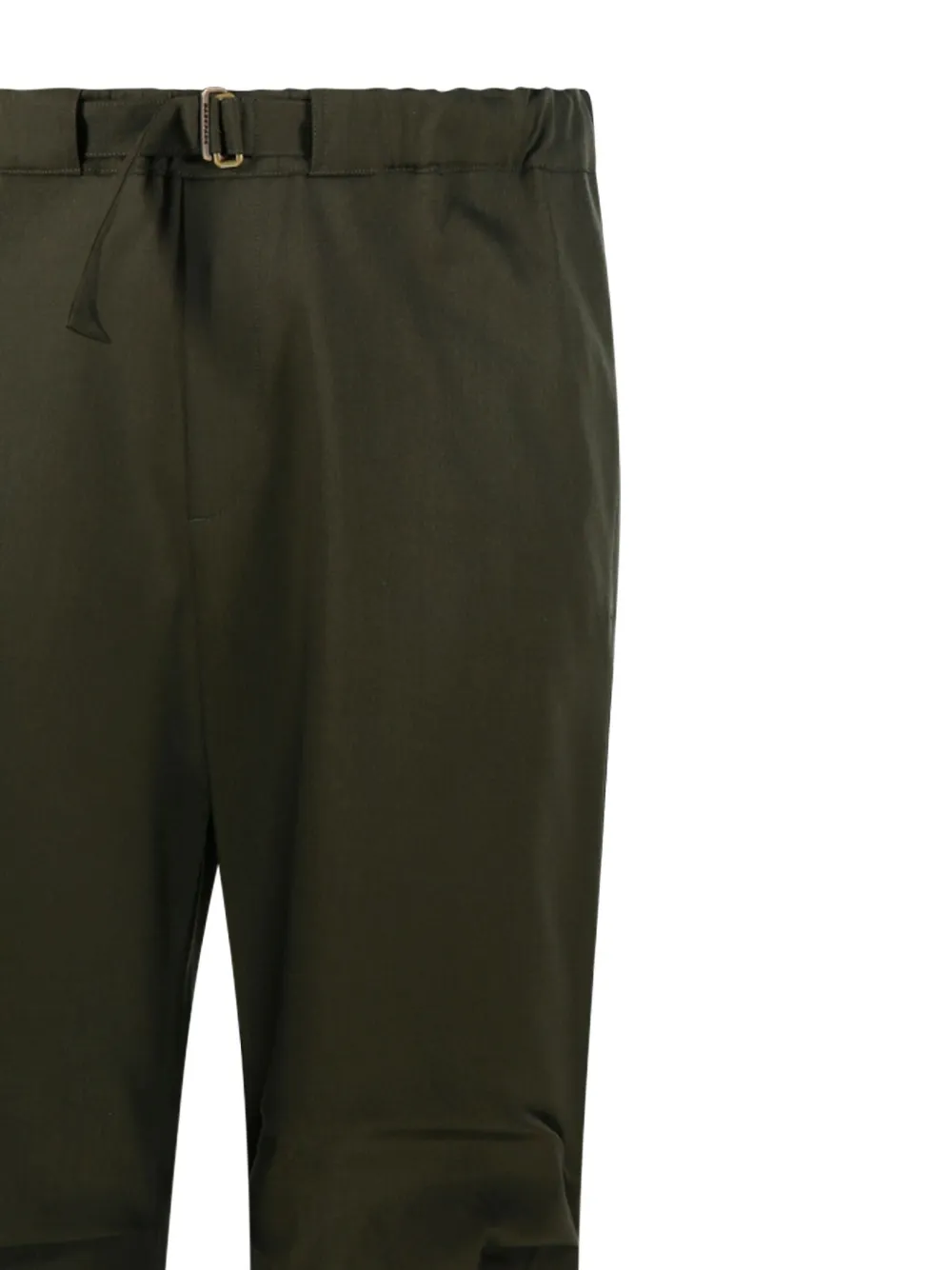 Пояс цвета милитари-зеленый, затягивающийся шнурком, задние карманы, прямой штанин, плоский перед