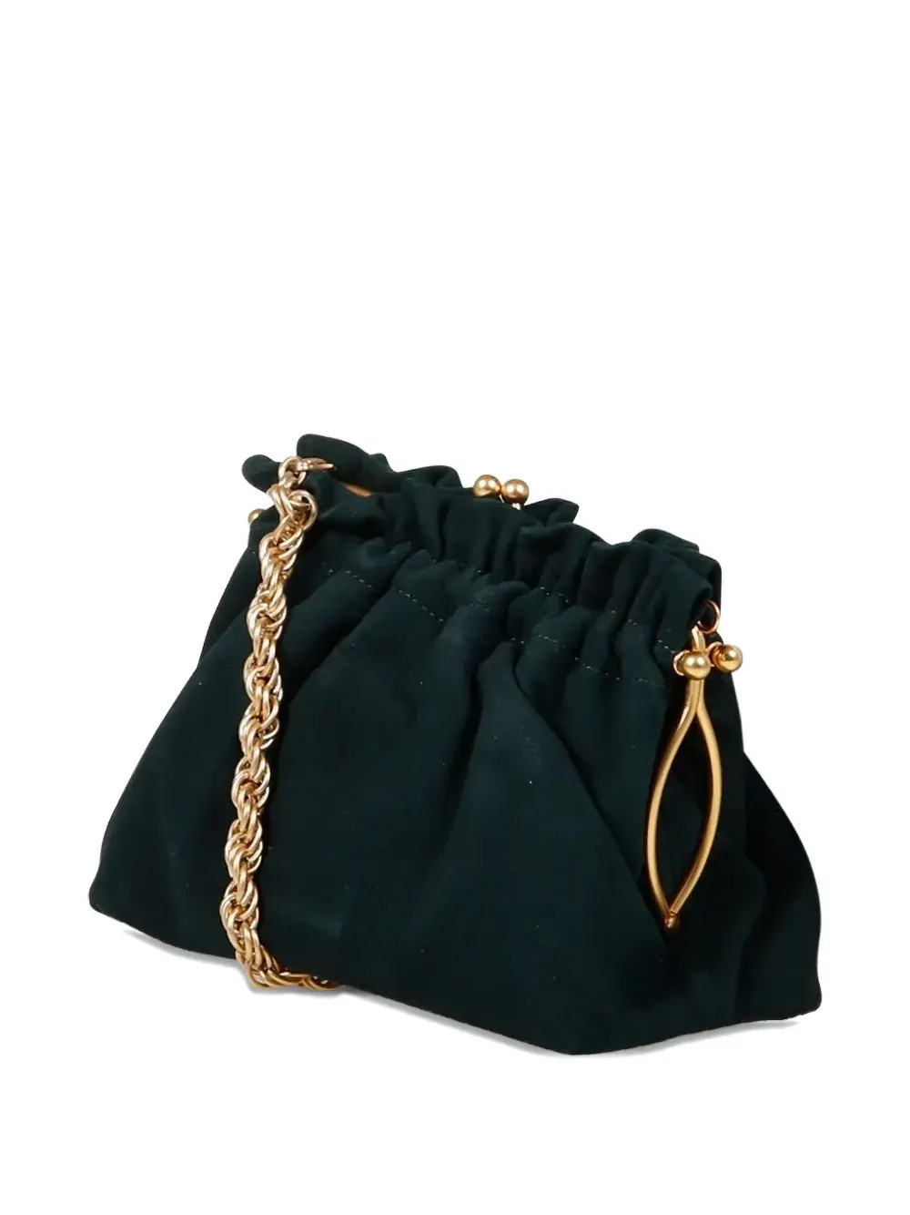 Застежка на зеленый шнурок, собранный на цепочку золотистого оттенка. Изделие поставляется в комплекте с защитным мешочком для пыли.