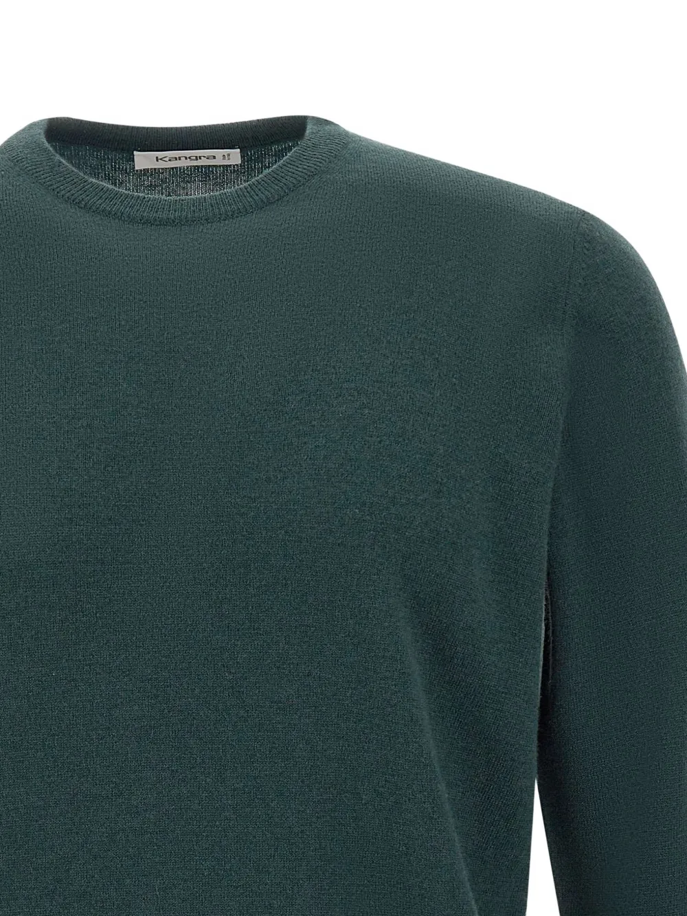 Бутылочно-зеленая шерсть, длинные рукава, круглый вырез, ребристые края