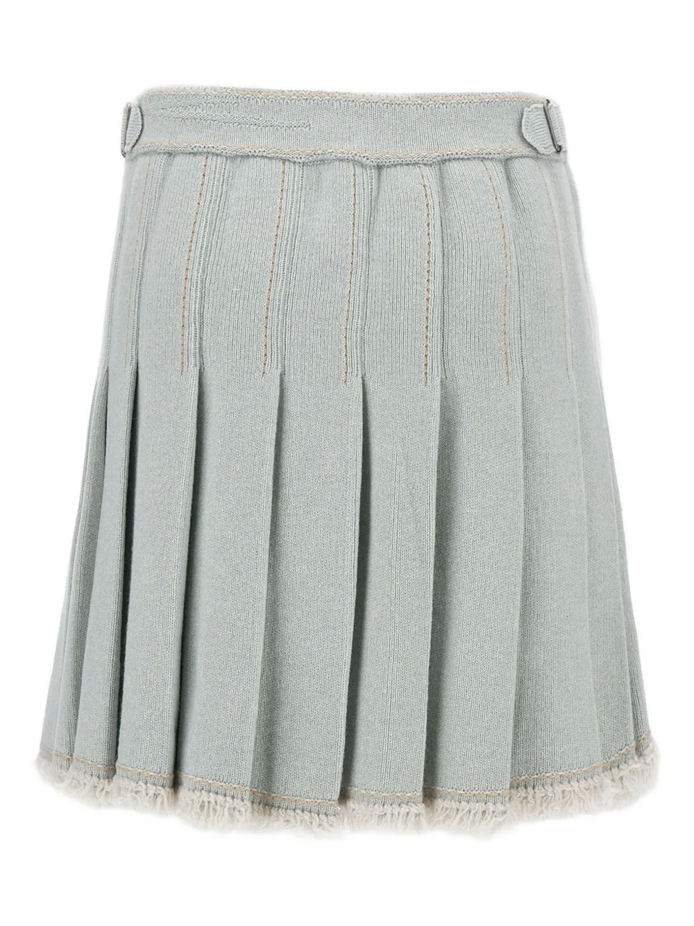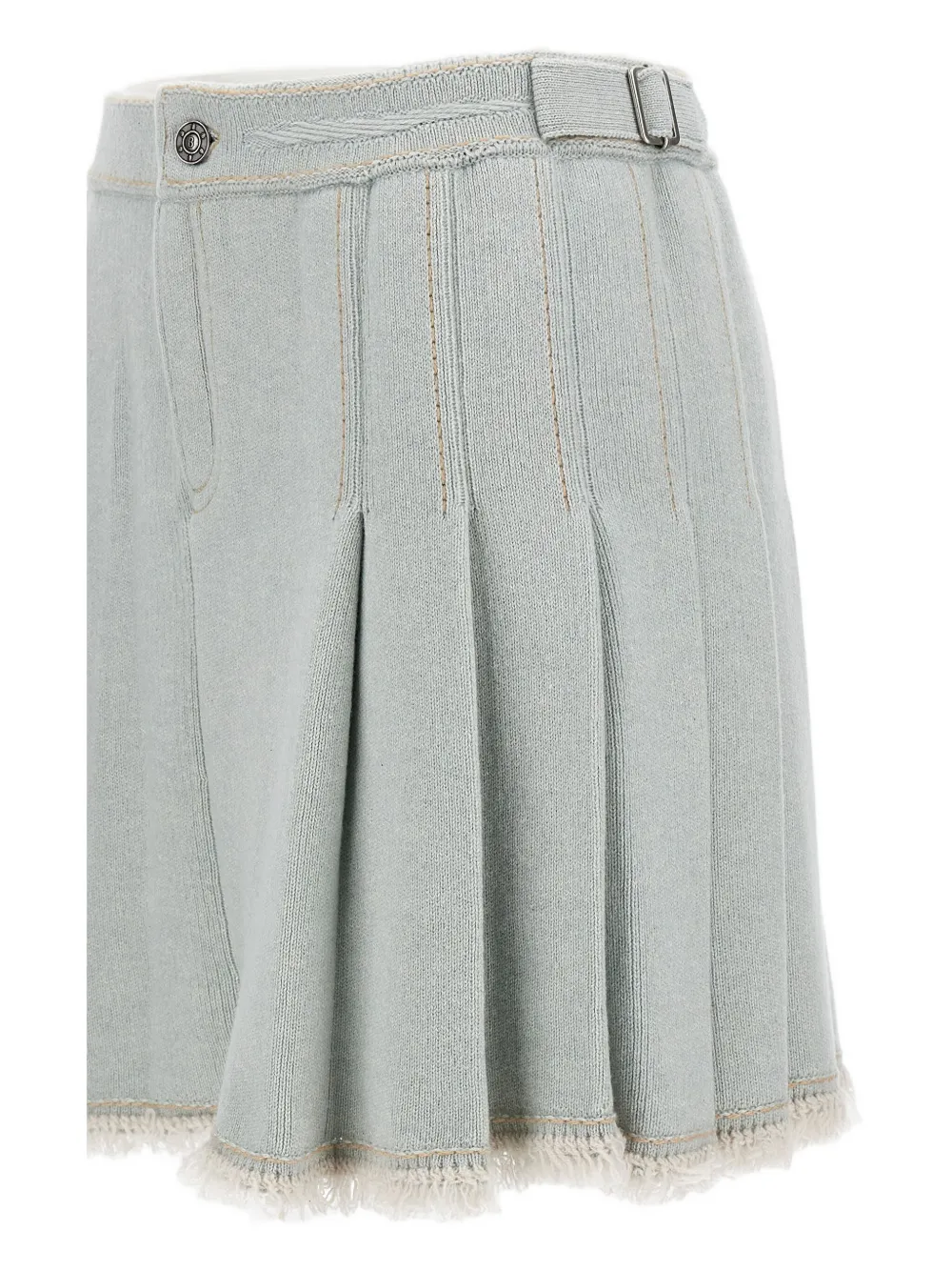 Светло-голубые плиссированные детали, необработанный край, пряжки на талии, смесь кашемира и хлопка