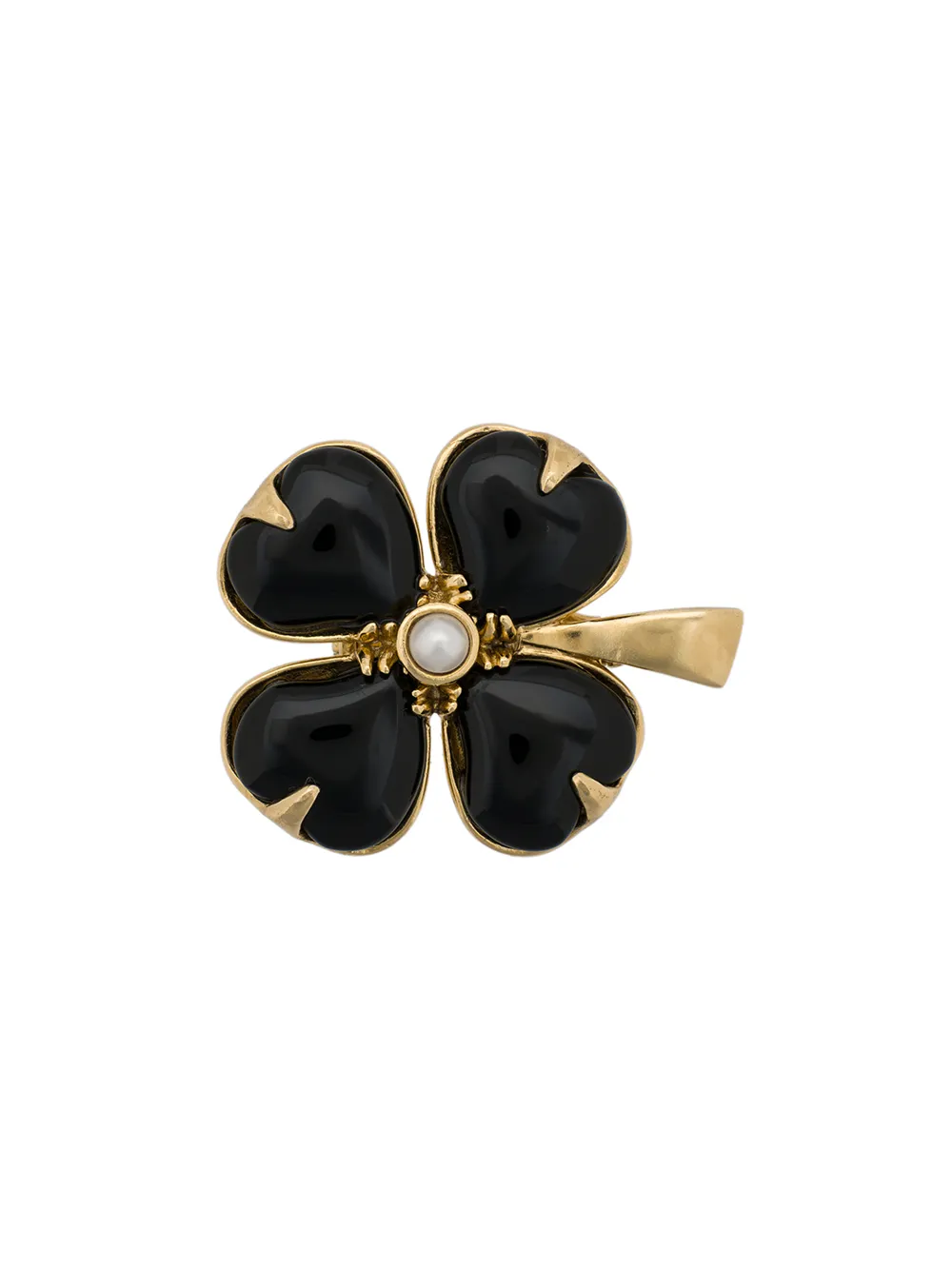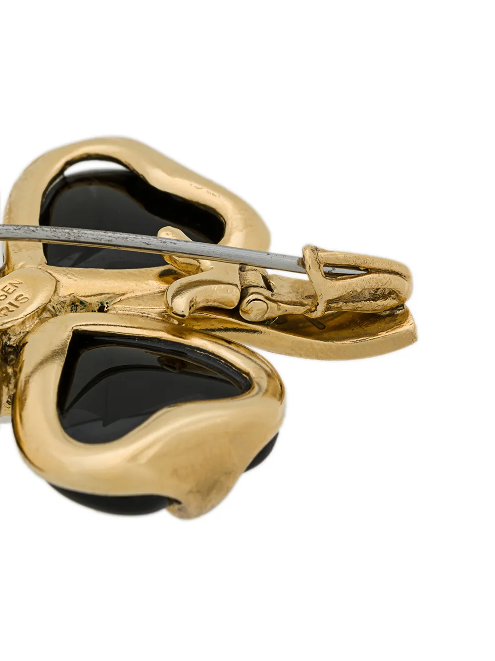 Trefle brooch от Goossens. Застежка на зажиме, декорация жемчугом и украшение из поделочных камней.