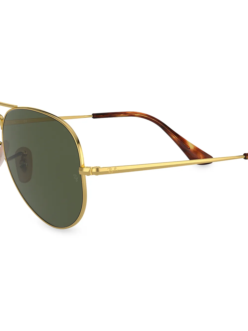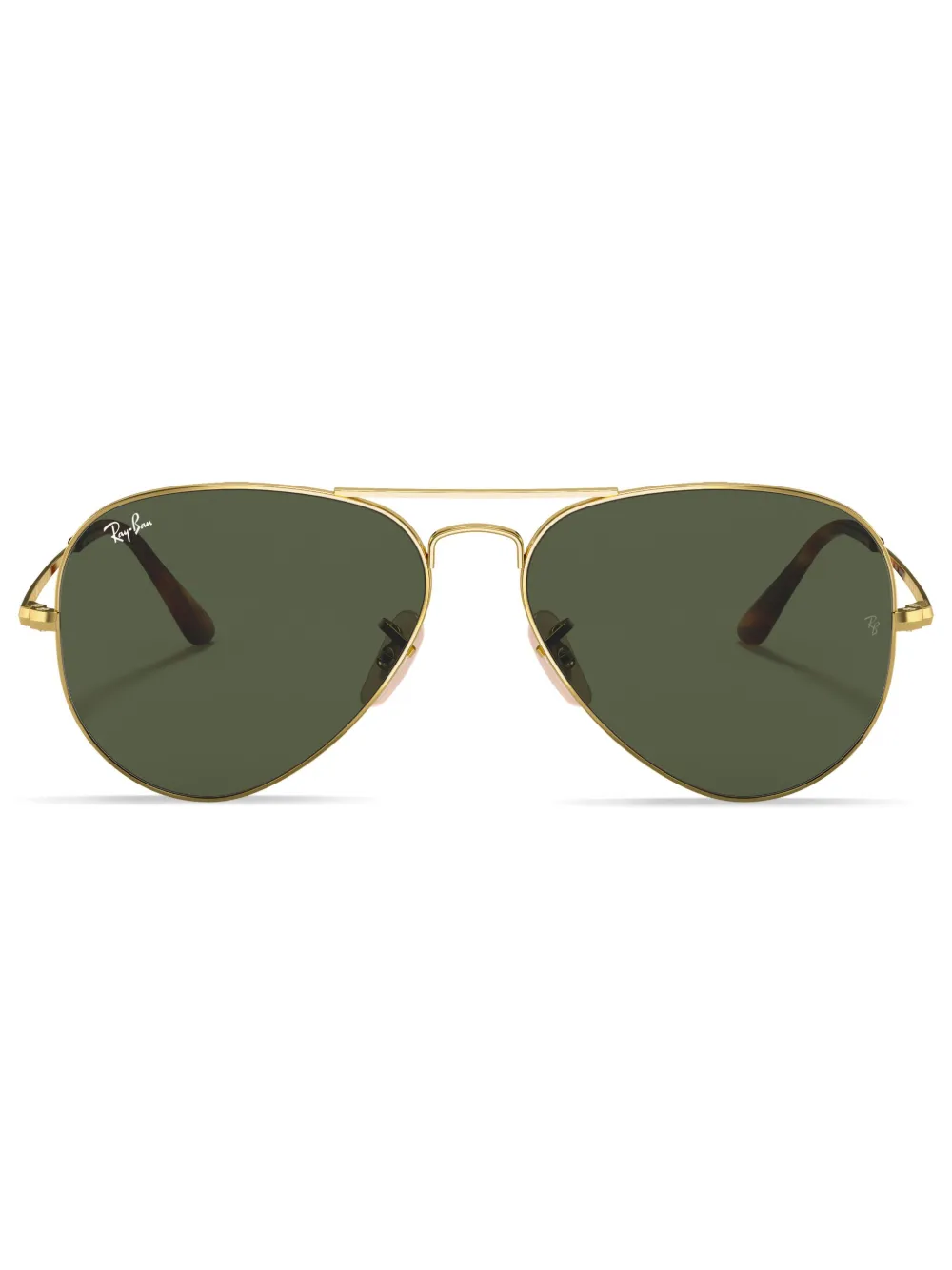 Солнцезащитные очки RB3689 от Ray Ban (Рэй Бан). Двойной мост, оправа 'авиатор', затемненные линзы, наклейка с логотипом и прямые дужки с изогнутыми концами. Прилагается защитный чехол. Модель в стиле унисекс.