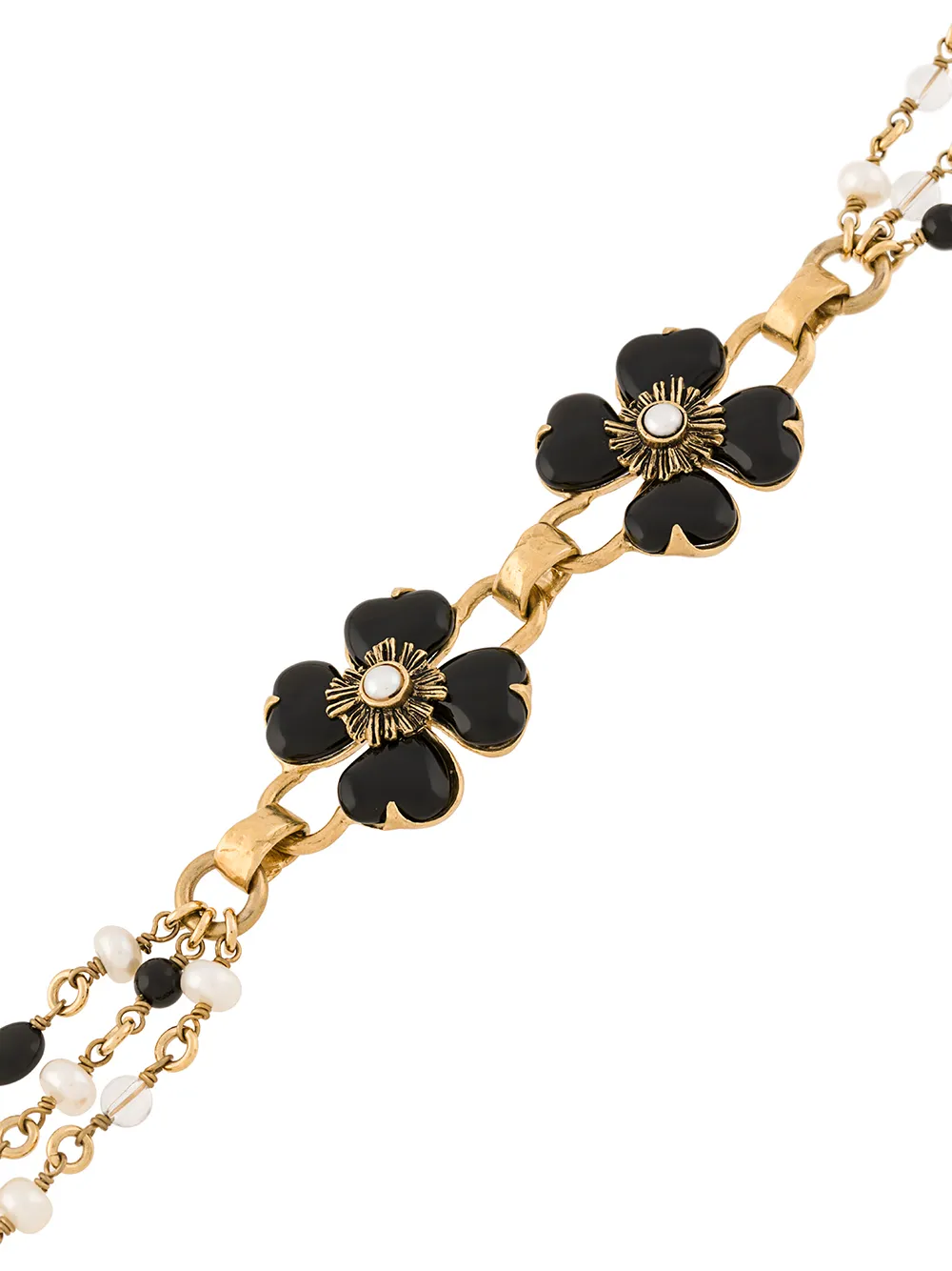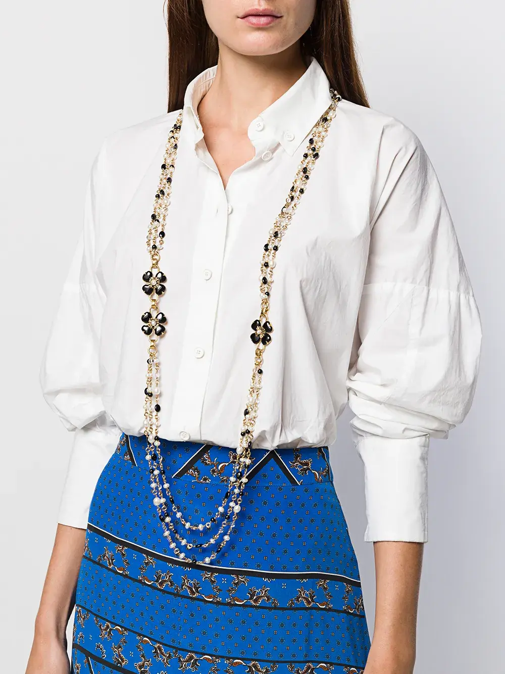 Колье Trèfle от Goossens. Цепочный ремень, декорация жемчугом и украшение из кристаллов.