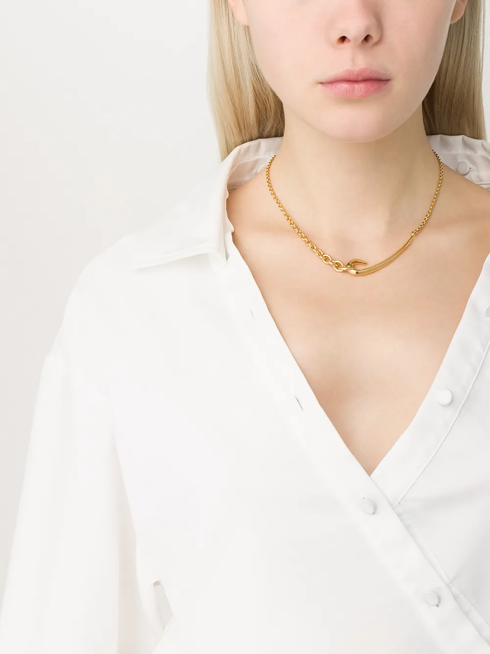 Колье-чокер Hook от Shaun Leane. Позолоченный сплав, имитация цепочки, отполированная отделка, замок-карабин и подвеска с логотипом.