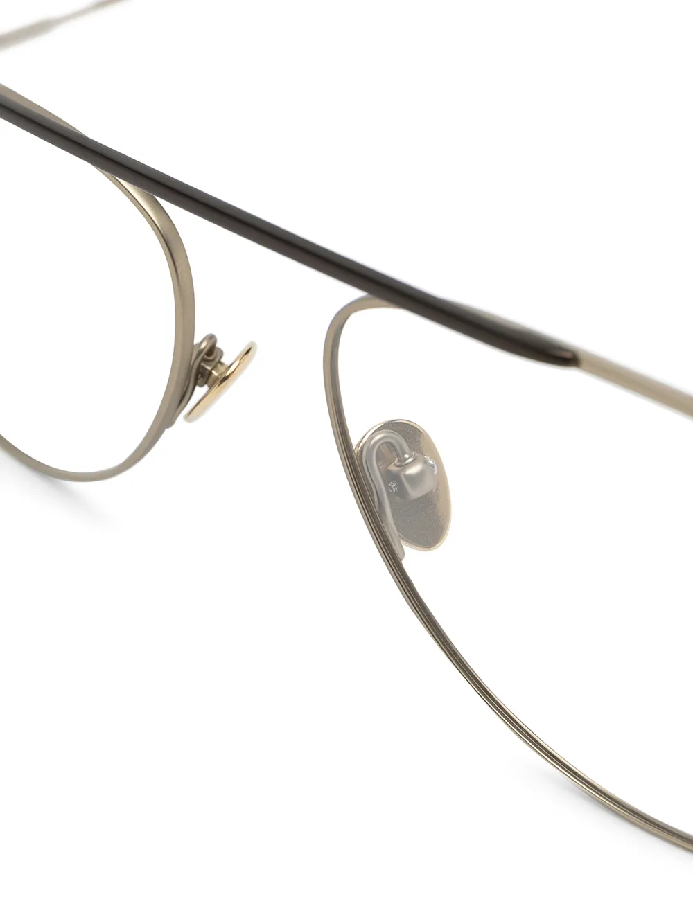 Оправа «пилот», прозрачные линзы, носоупоры, гравированный логотип на дужках, прямые дужки и дужки с закругленными концами. В комплект входит защитный чехол для очков. Обратите внимание, что на FARFETCH продаются оправы с линзами без диоптрий.