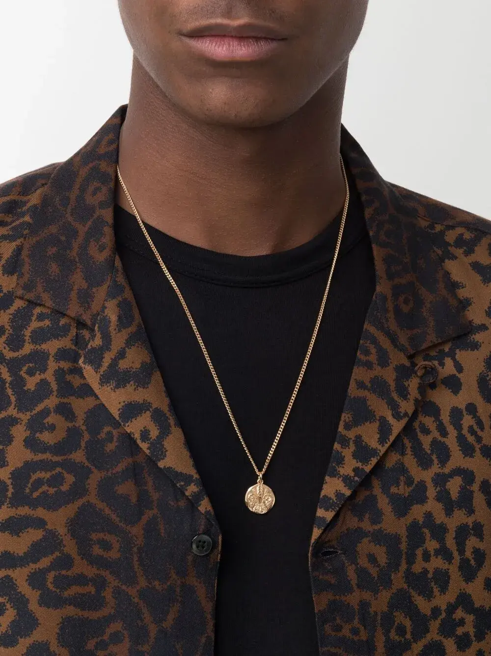 Подвеска в виде монеты, золотистая фурнитура и тонкая цепочка.