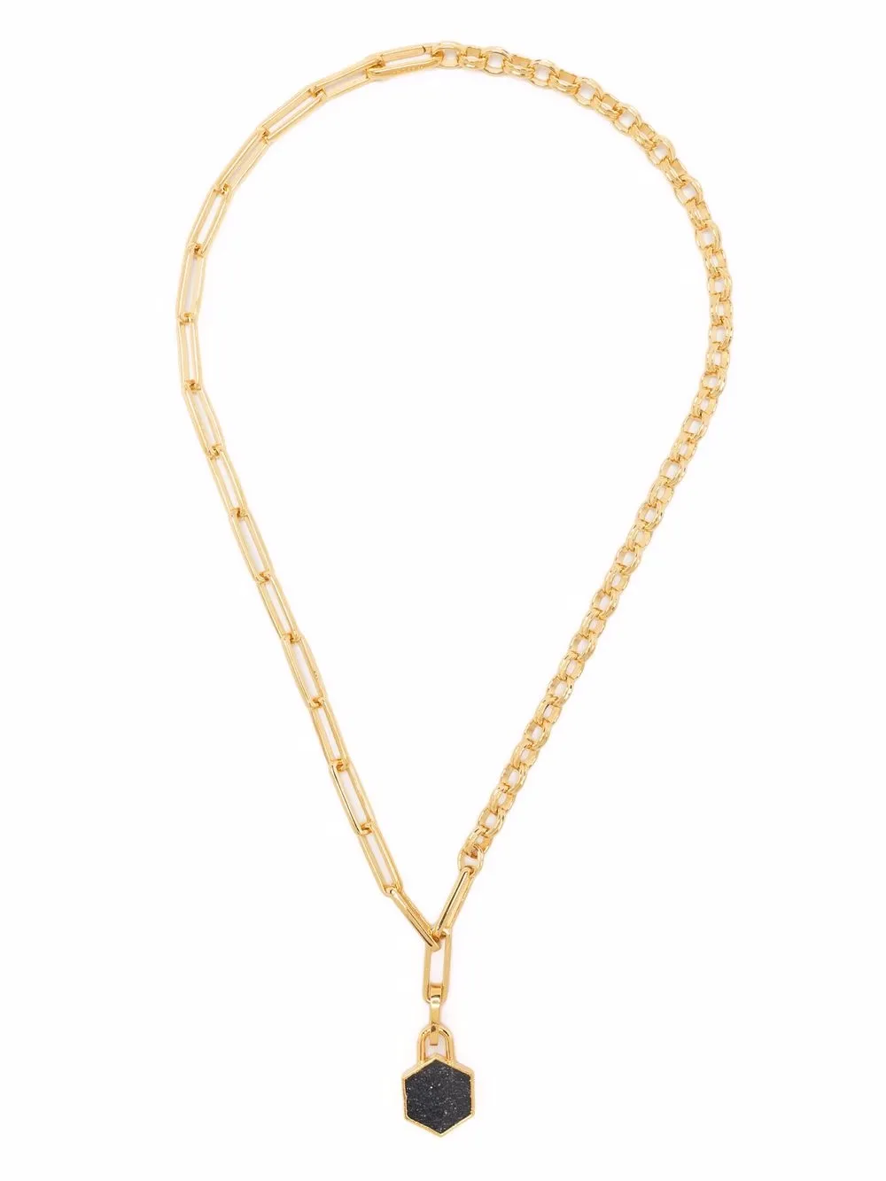 Кварц, покрытие из золота, цепочка, висячий замок и застежка на зажиме.