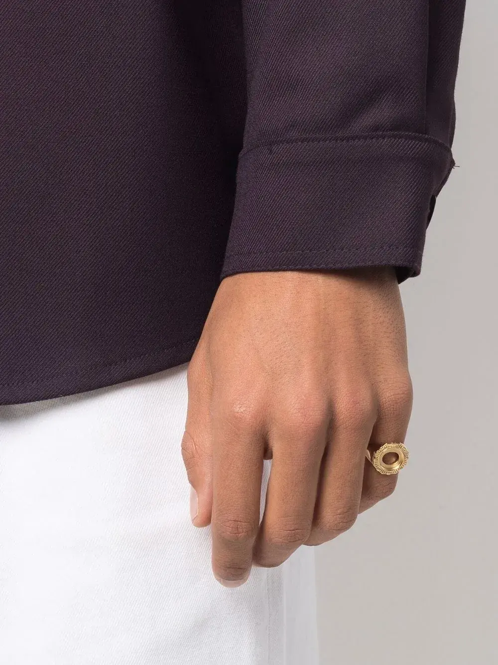 Вырезные детали, детали в рубчик и кольцо-печатка. Цвет: золотистый.