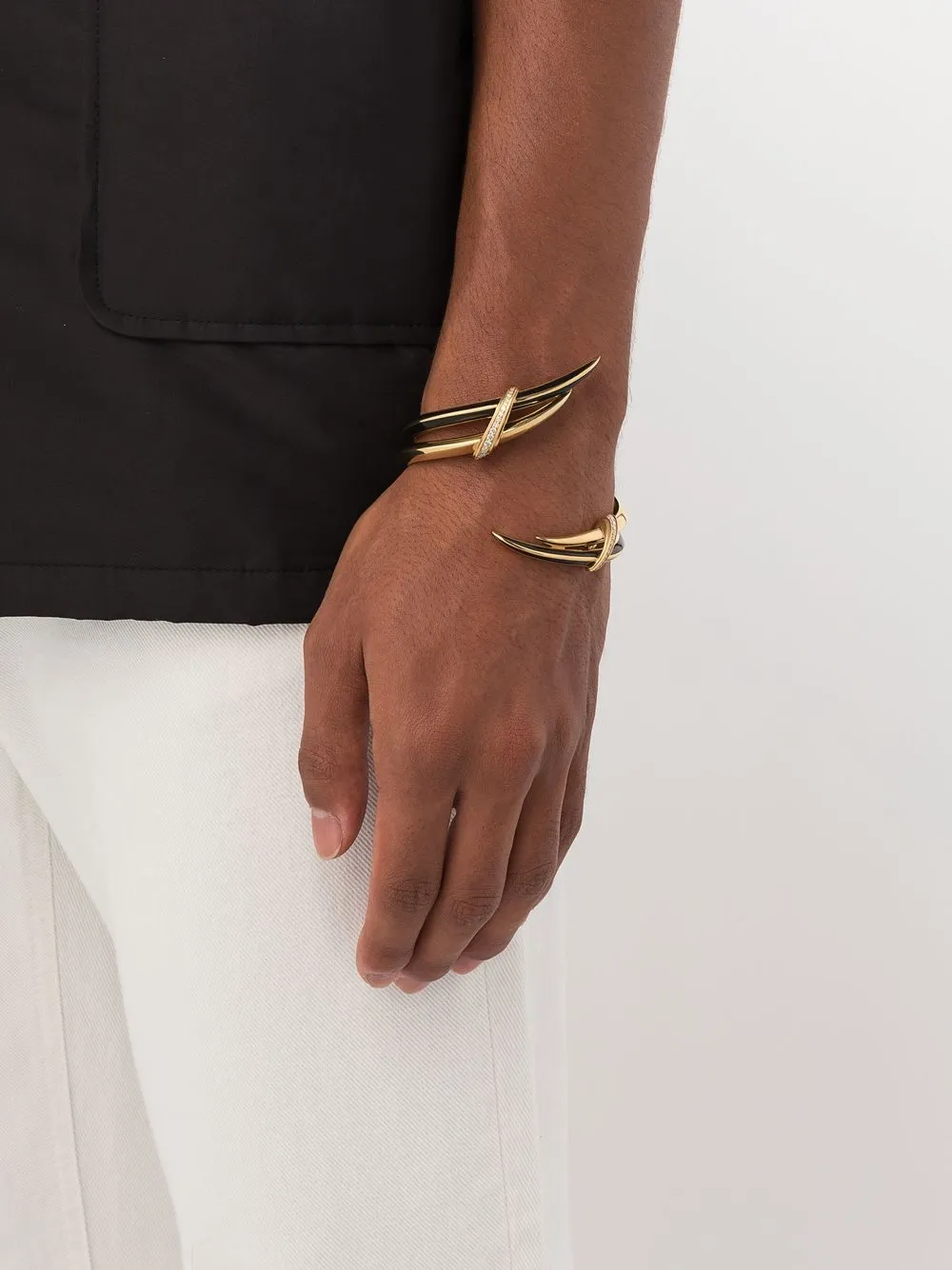 Черный, позолоченное серебро 925 пробы (вермей), бриллиантовое паве, дизайн без застежки и асимметричная форма. Украшения могут потерять свой блеск из-за ежедневного использования и влияния внешних факторов. Чтобы этого избежать, используйте неабразивные чистящие средства для ювелирных украшений.