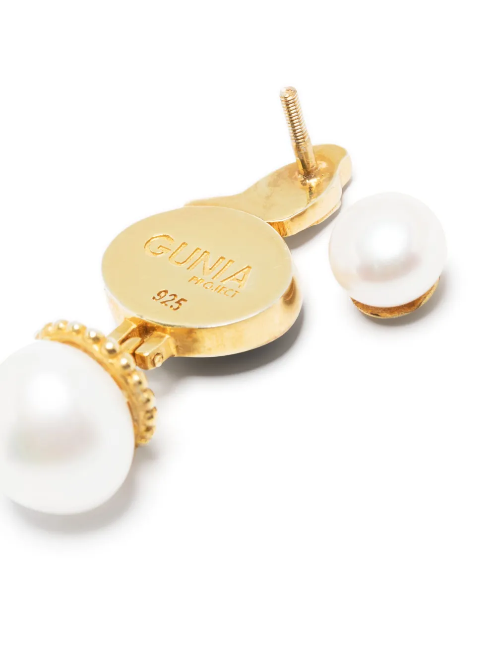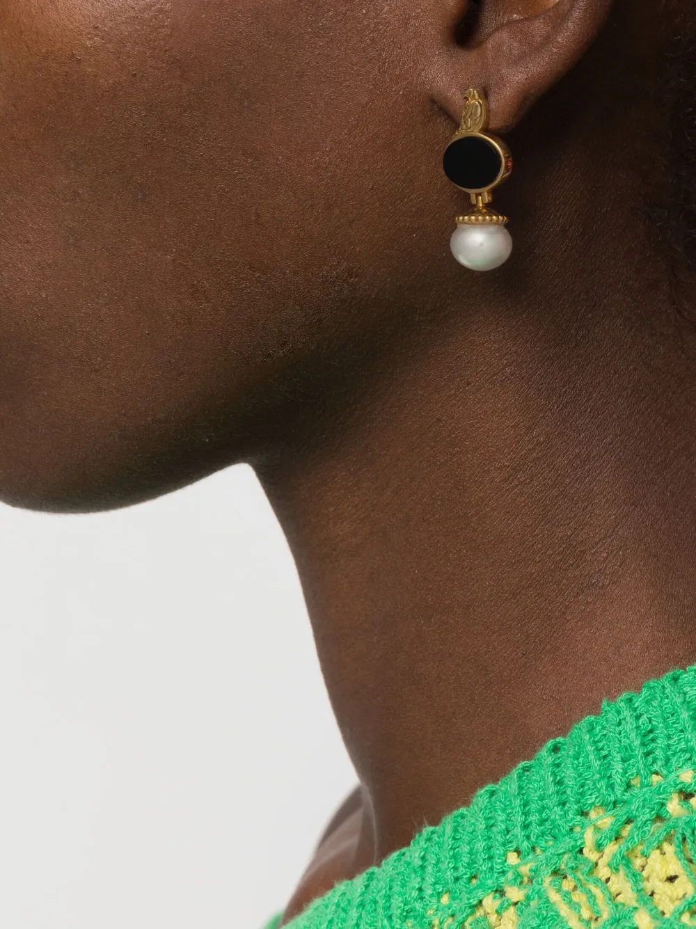 Тисненая деталь, барочный жемчуг и застежка-штифт. В комплект входят две серьги.