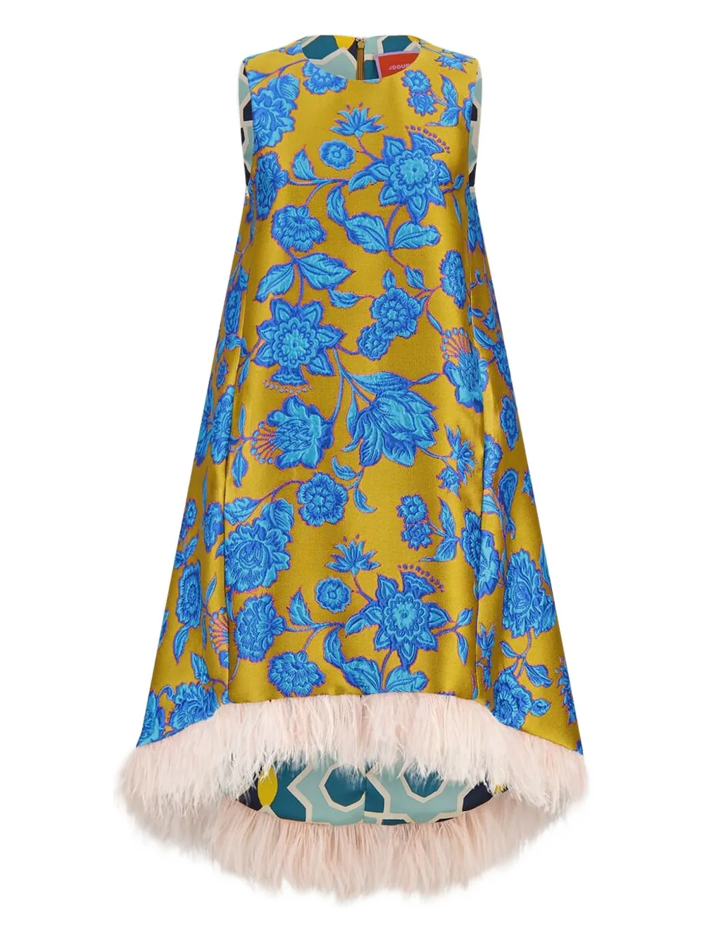 Платье с перьями и цветочным принтом La DoubleJ, золотой