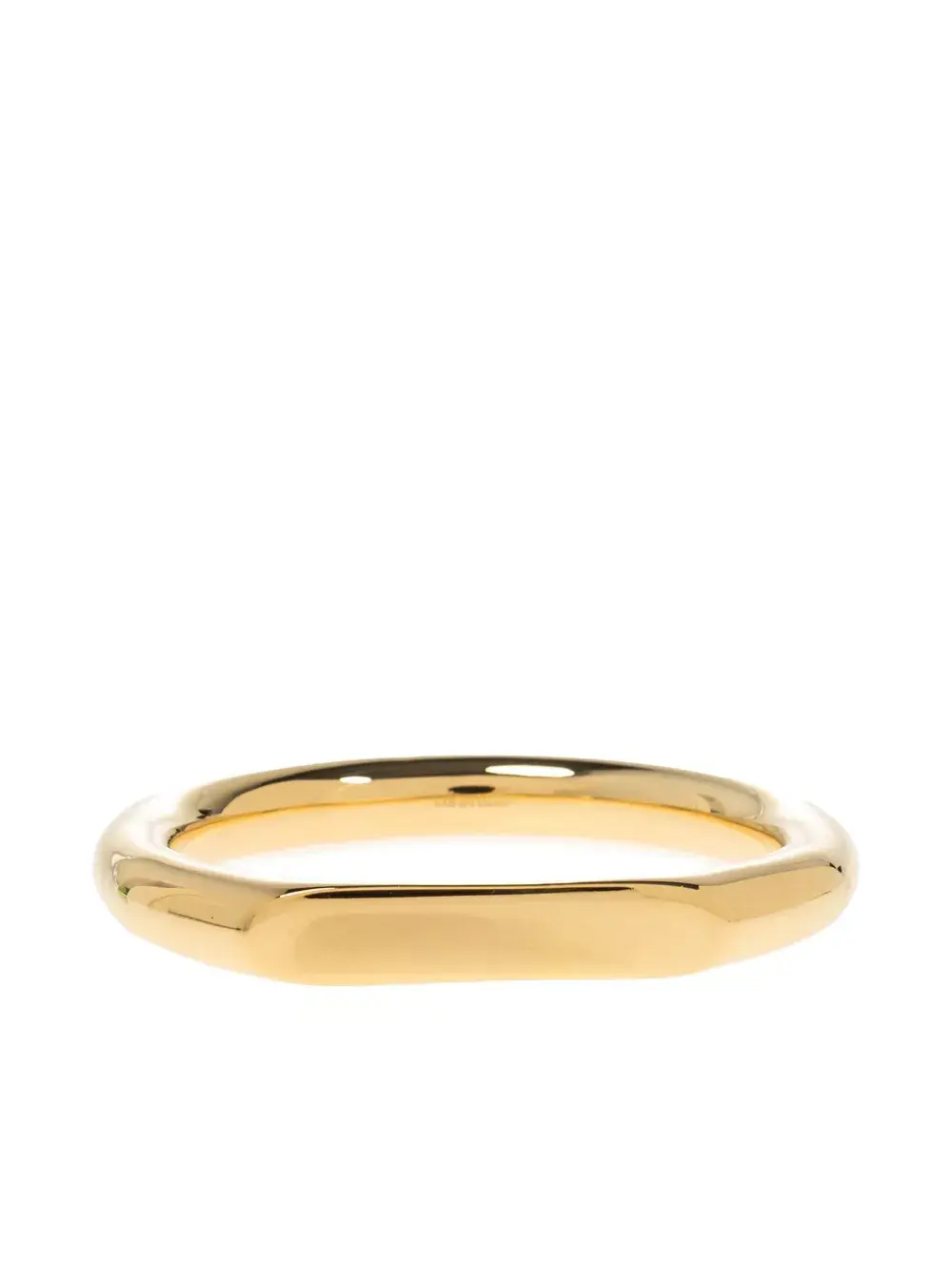 Овальная форма золотистого оттенка, массивная полоса, граненая отделка