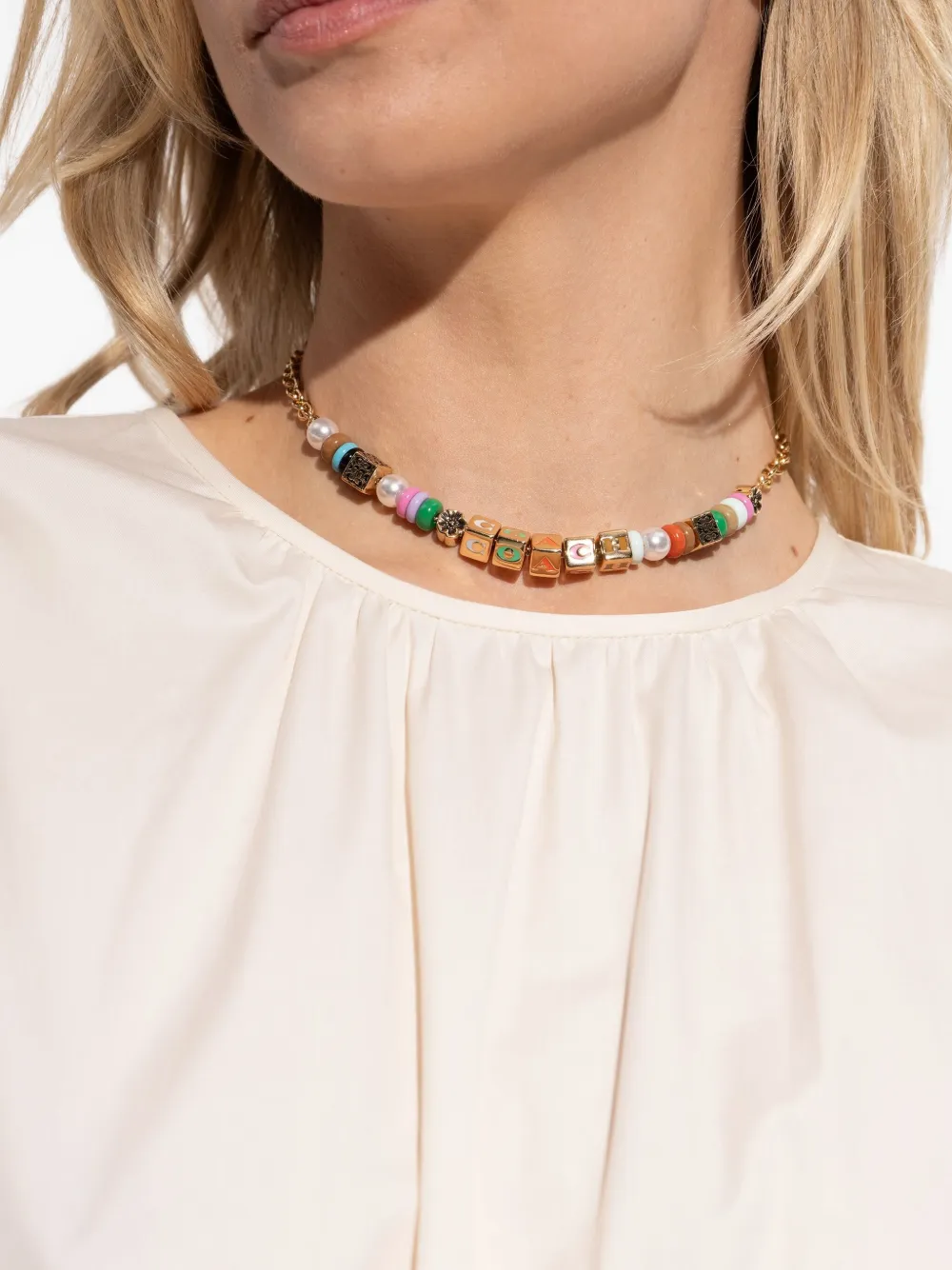Ожерелье с подвесками, украшенное бисером Coach, золотой