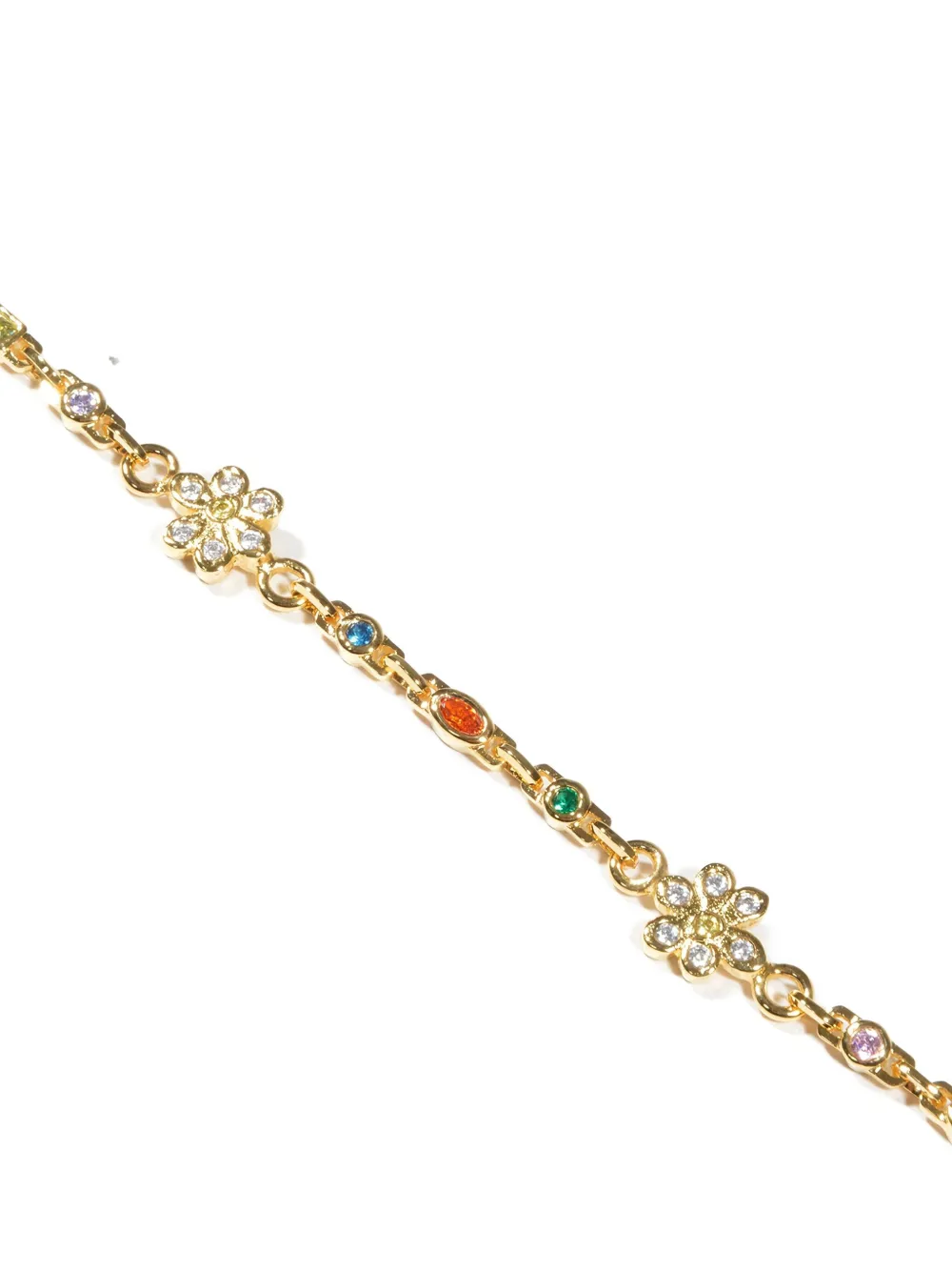 Украшения в виде цветов из разноцветных камней золотистого оттенка