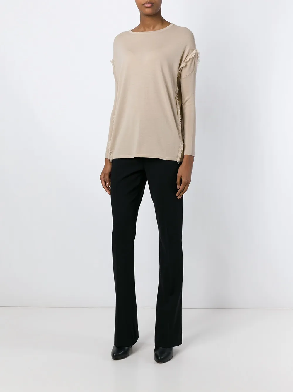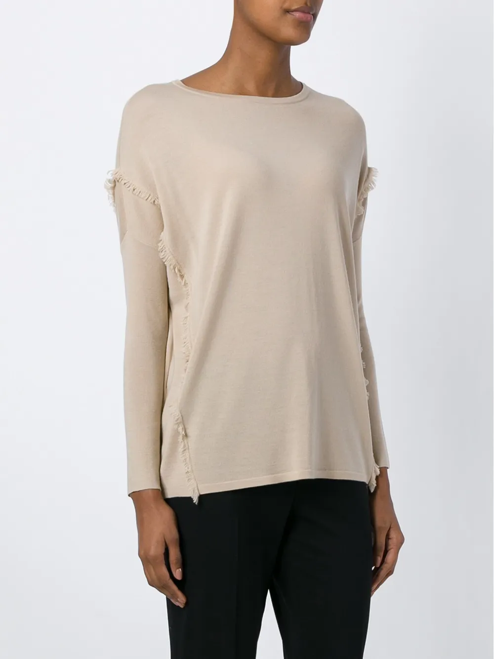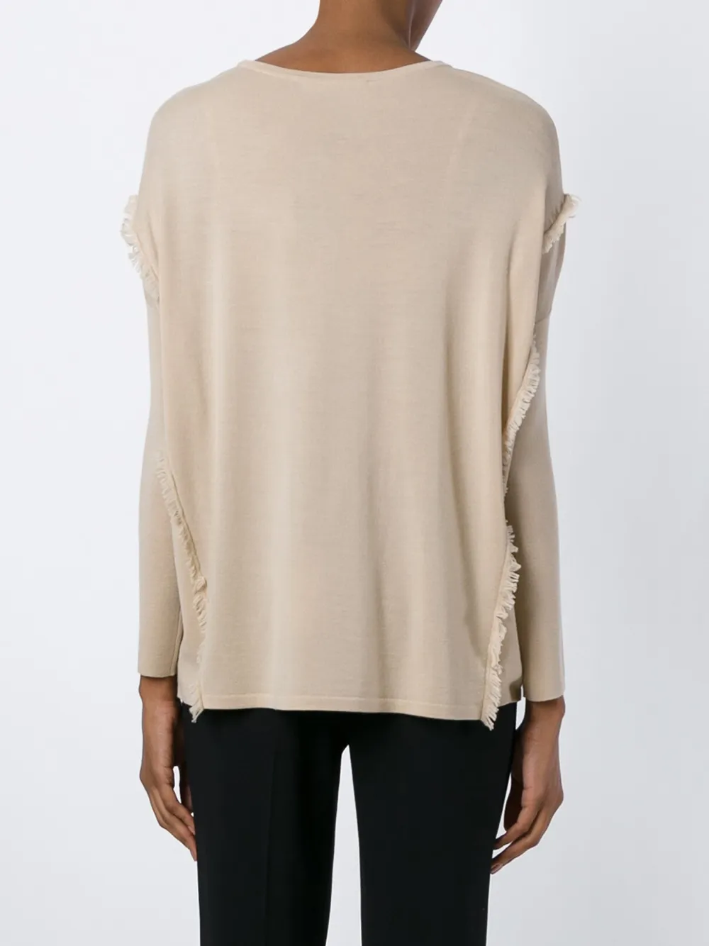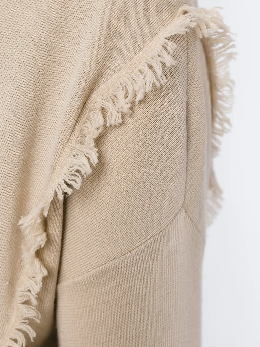 Бежевый свитер с бахромой из мериносовой шерсти от Ralph Lauren.