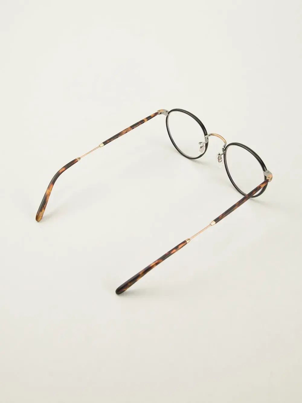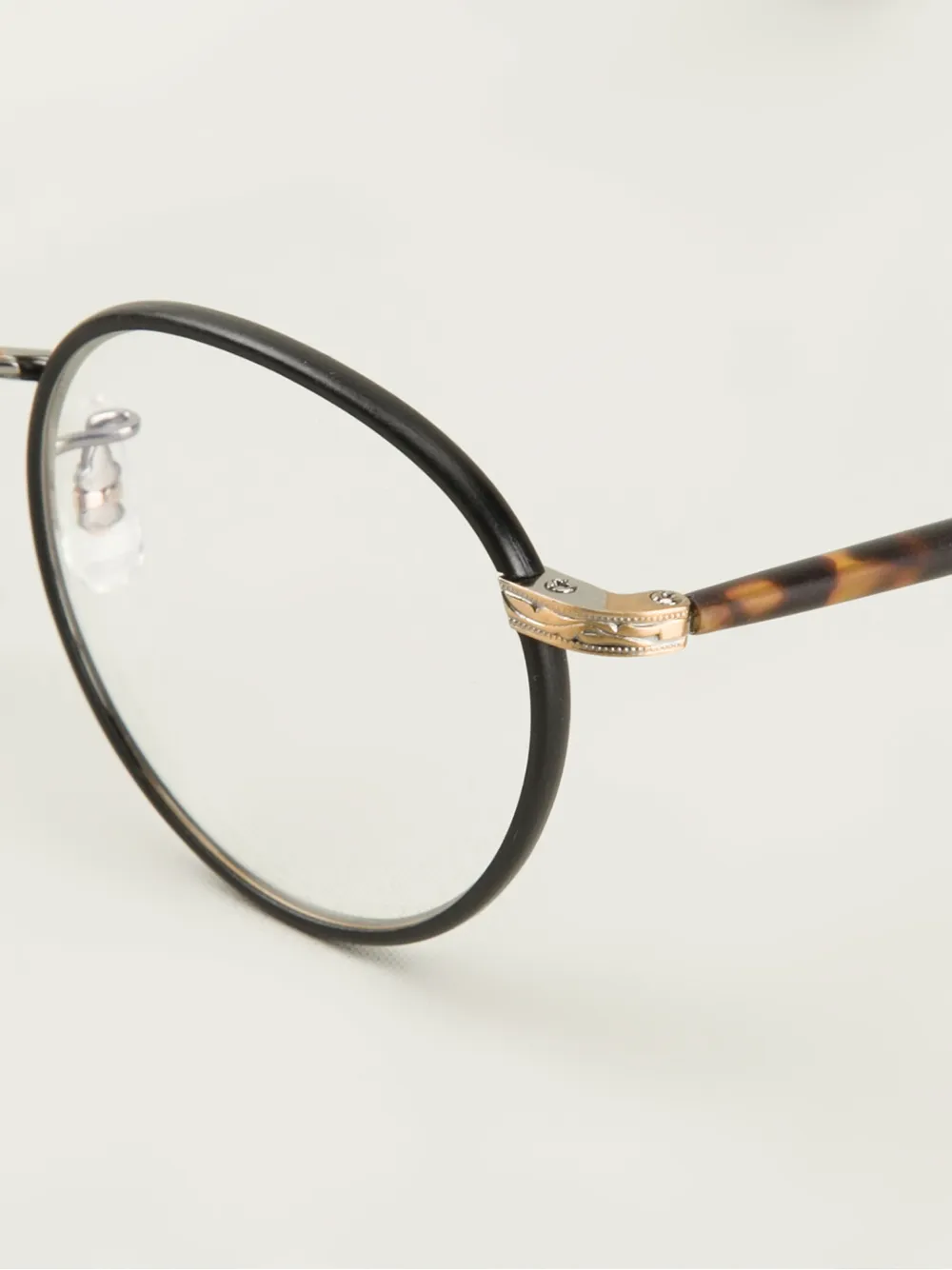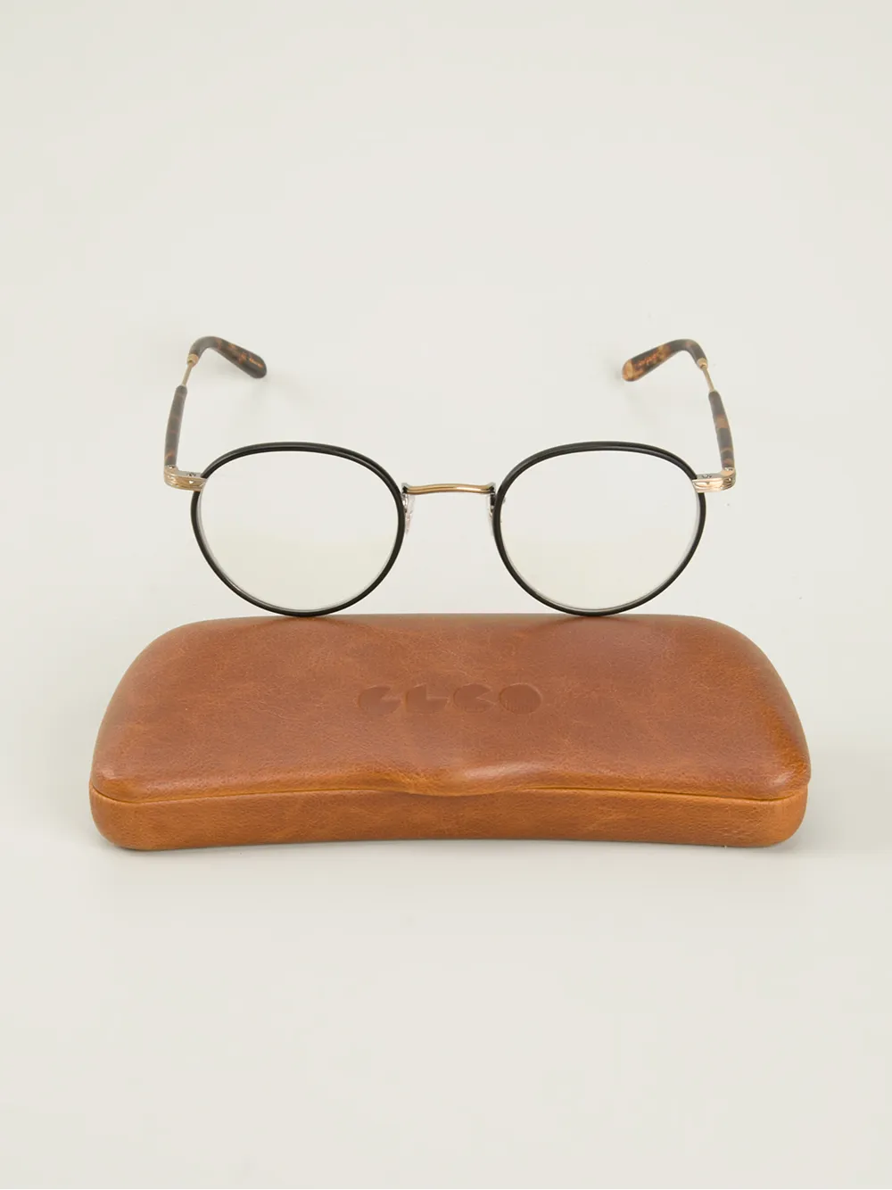 Черные очки с эффектом черепашьего панциря 'Wilson' от Garrett Leight. Круглые оправы? закругленные дужки. Прилагается защитный чехол. Модель в стиле унисекс.