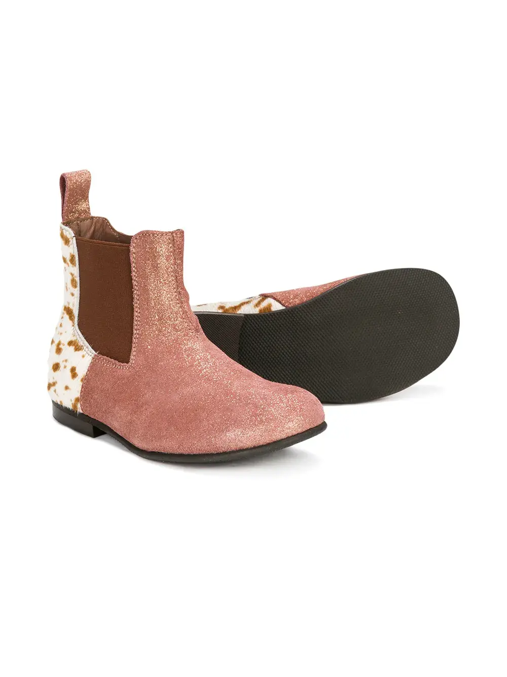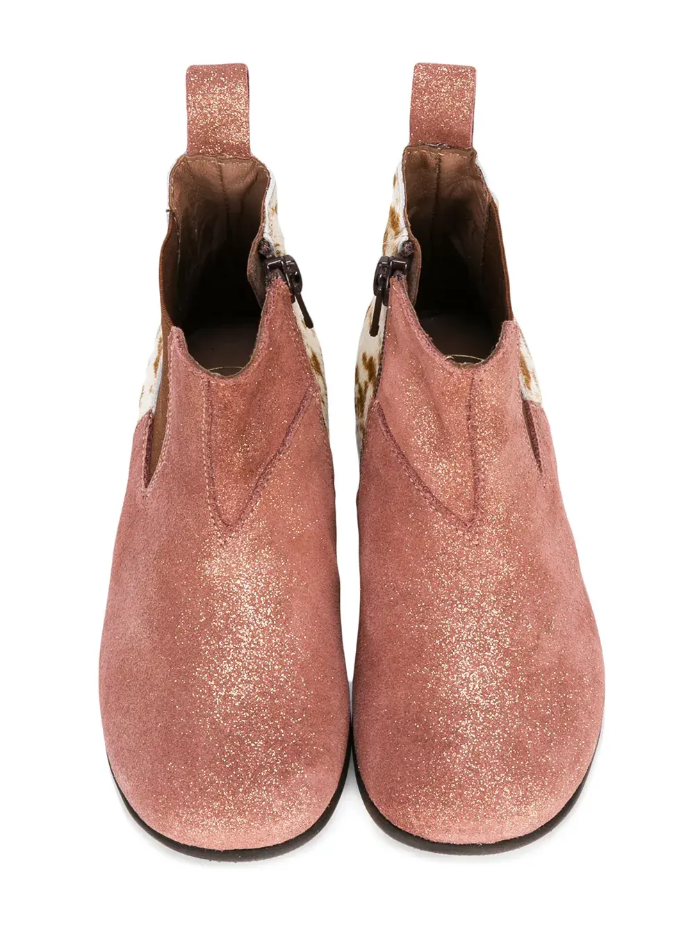 Розовые ботинки из кожи, замши и шерсти пони по щиколотку от Pèpè.