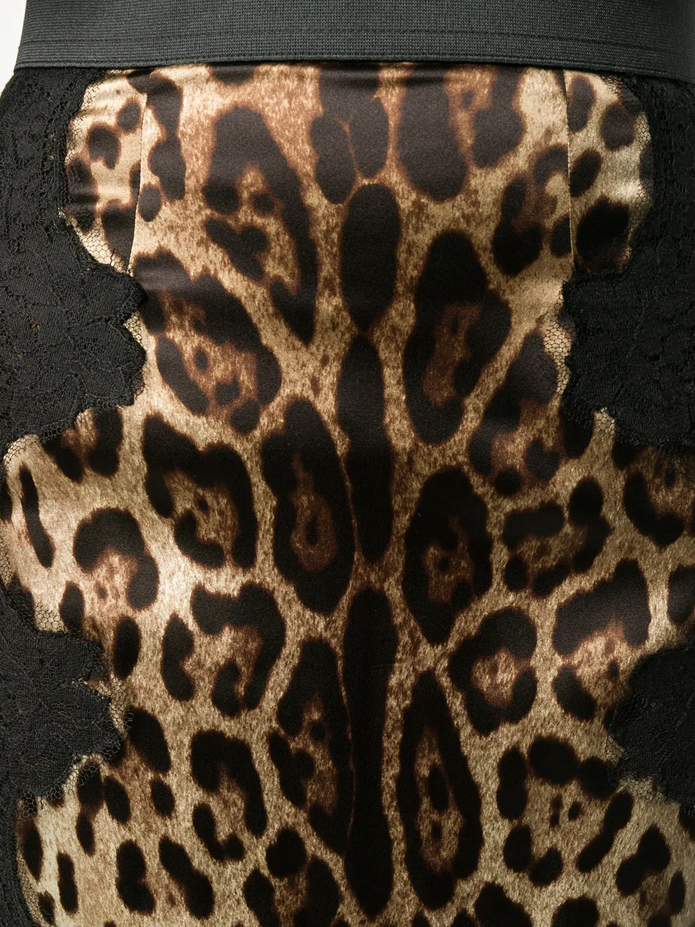 Колоритный декор, цветочные узоры и тонкое кружево стали отличительными символами современных коллекций итальянского дома моды Dolce & Gabbana. Среди моделей - коричневая юбка-карандаш из микса шелка и хлопка с леопардовым принтом от Dolce & Gabbana (Дольче энд Габбана). Облегающий крой, средняя длина, узкий крой, леопардовый принт и вставки из кружева. Сделано в Италии.
