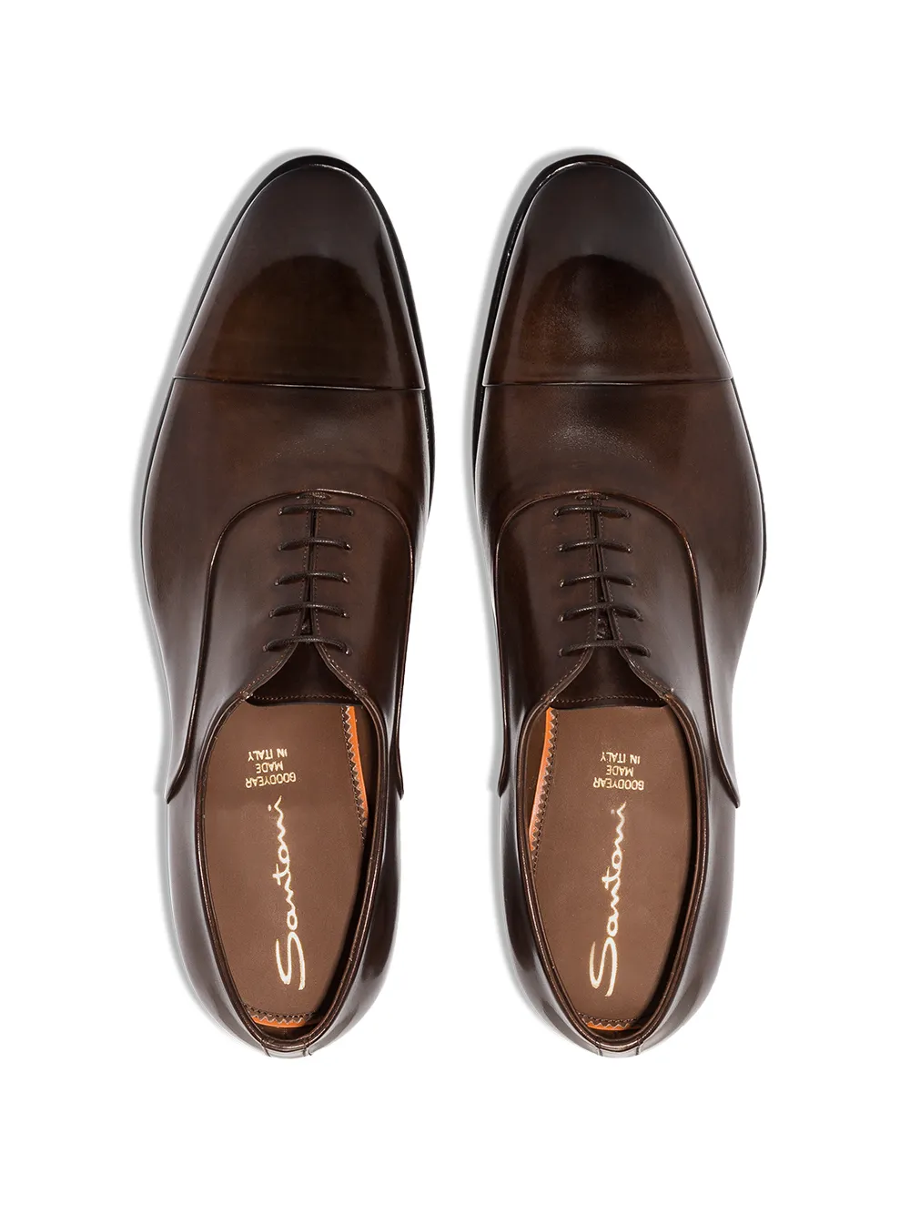 Оксфорды на шнуровке от Santoni (Сантони). Закругленный носок, прошитые панели, ровная поверхность с матовым покрытием, фирменная стелька, наборный каблук и кожаная подошва. Цвет: коричневый.