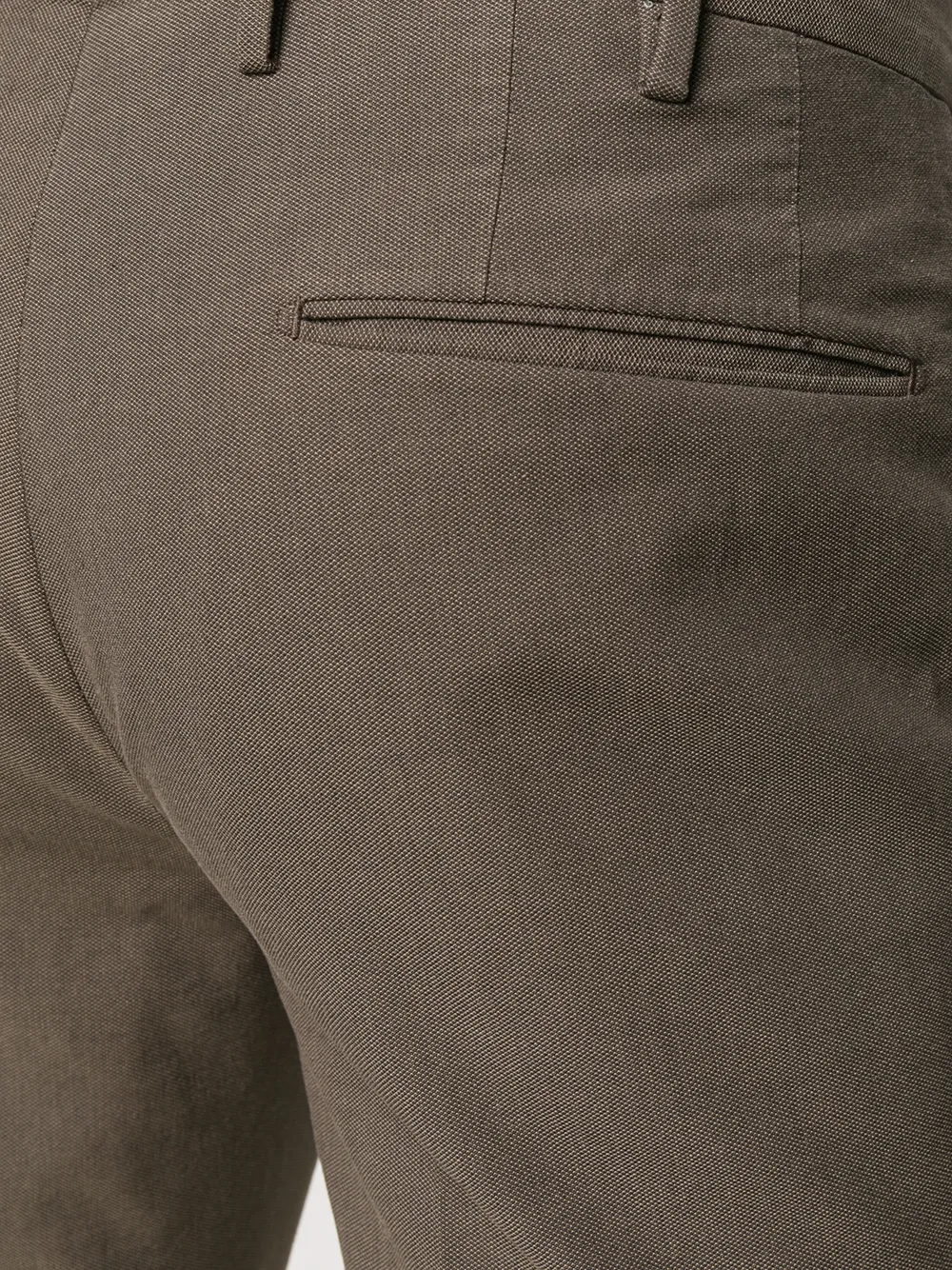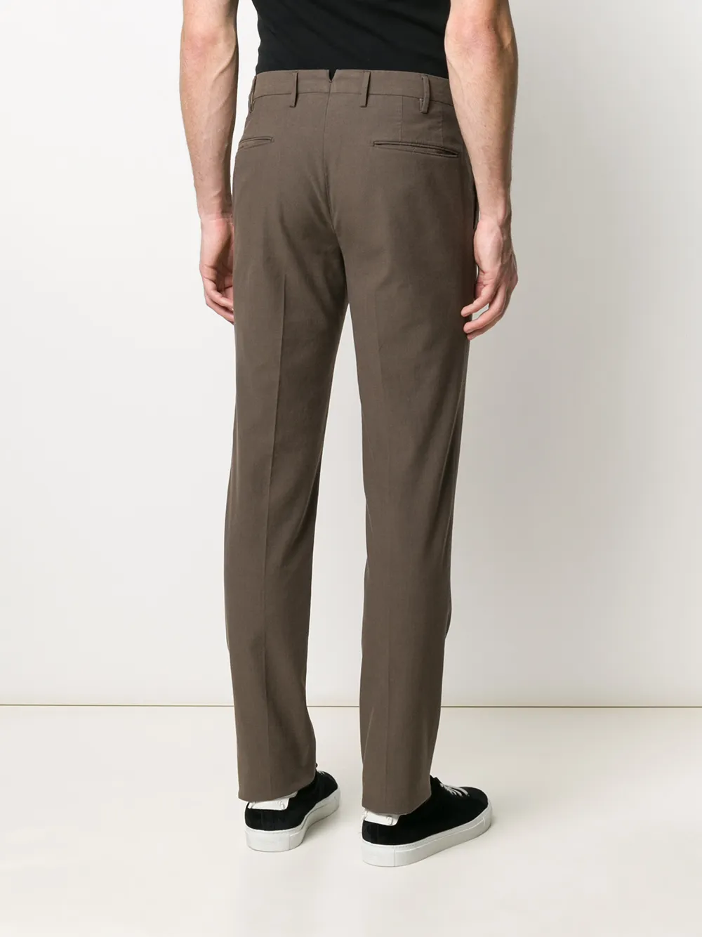 Строгие брюки прямого кроя от Incotex. Пояс с петлями для ремня, смещенная застежка на пуговицах спереди, задние карманы с листочкой и стандартная длина.