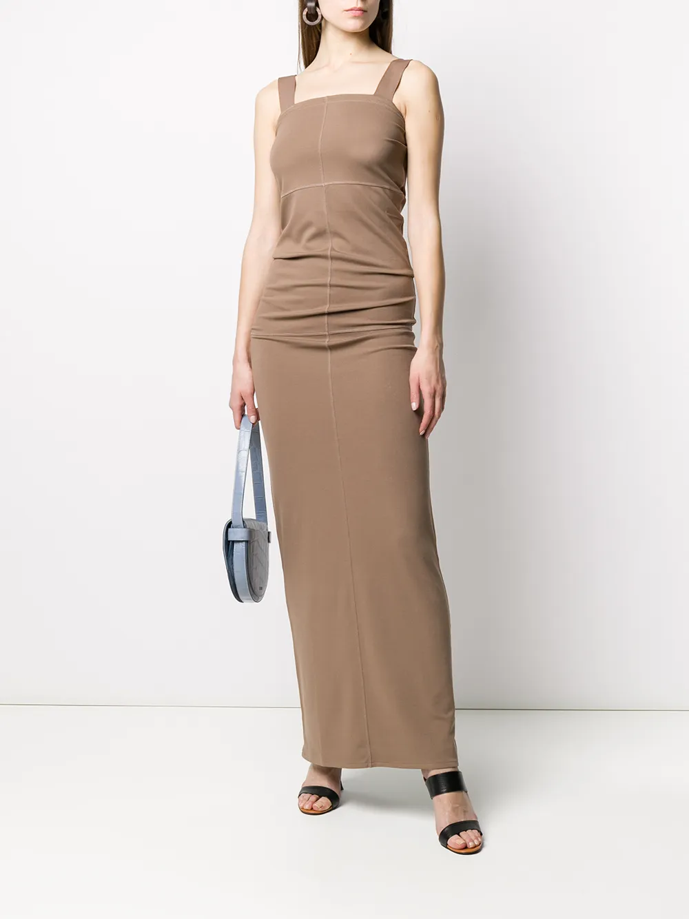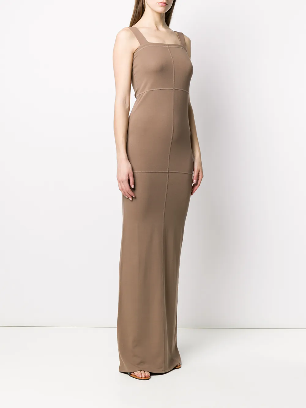 Платье макси с квадратным вырезом от Lemaire. Лямка на плечо, квадратный вырез, узкий крой и удлиненная модель.