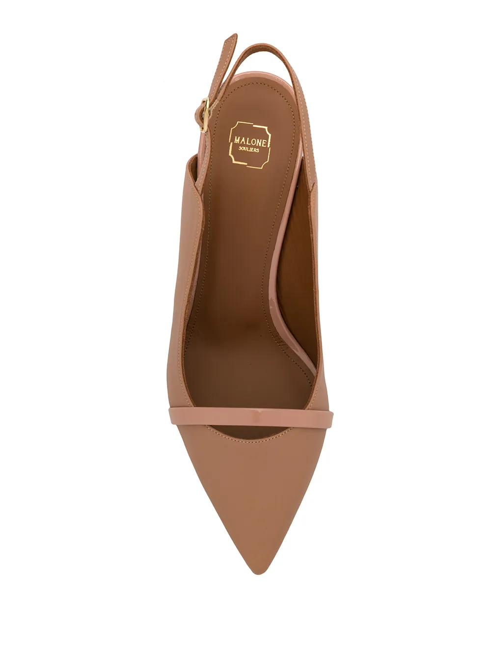 Туфли-лодочки Marion от Malone Souliers. Открытая пятка, боковая застежка на пряжке, шпилька средней высоты, фирменная стелька и заостренный носок.