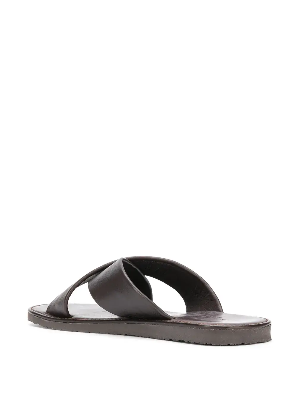 Открытый носок, перекрестные ремешки и плоская кожаная подошва. Цвет: коричневый.