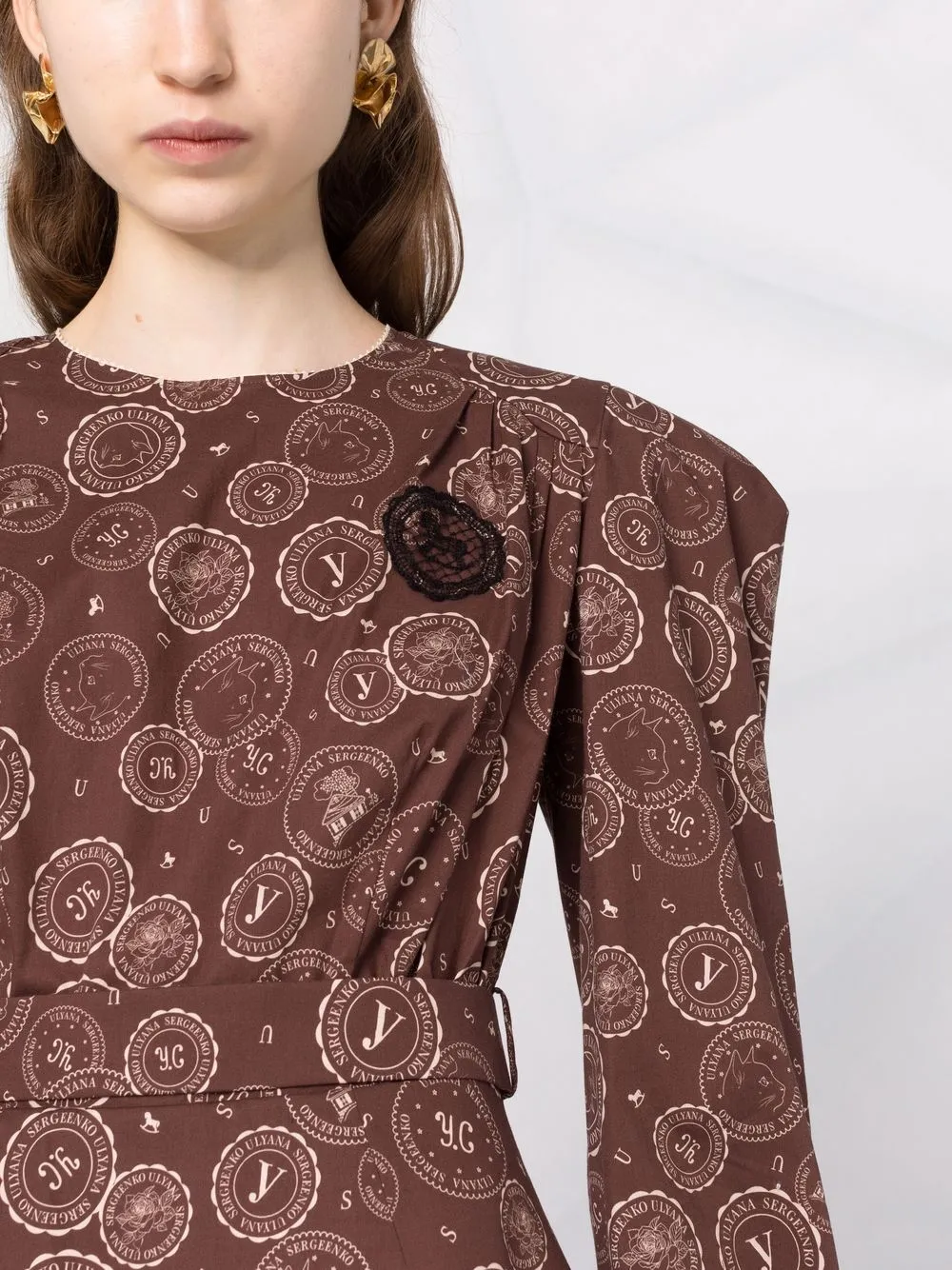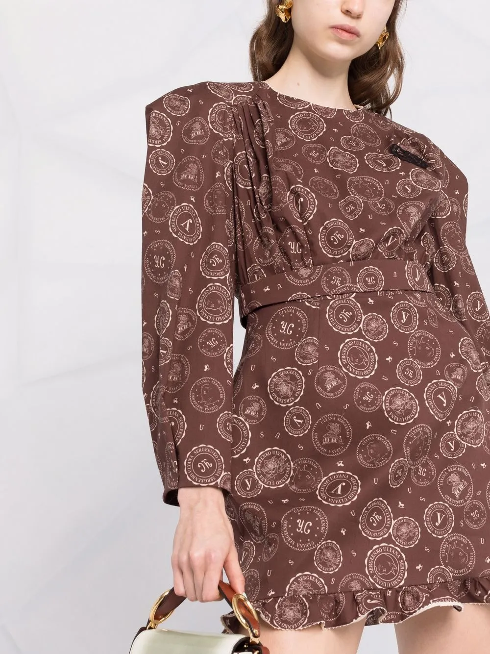 Платье мини с логотипом Ulyana Sergeenko, коричневый