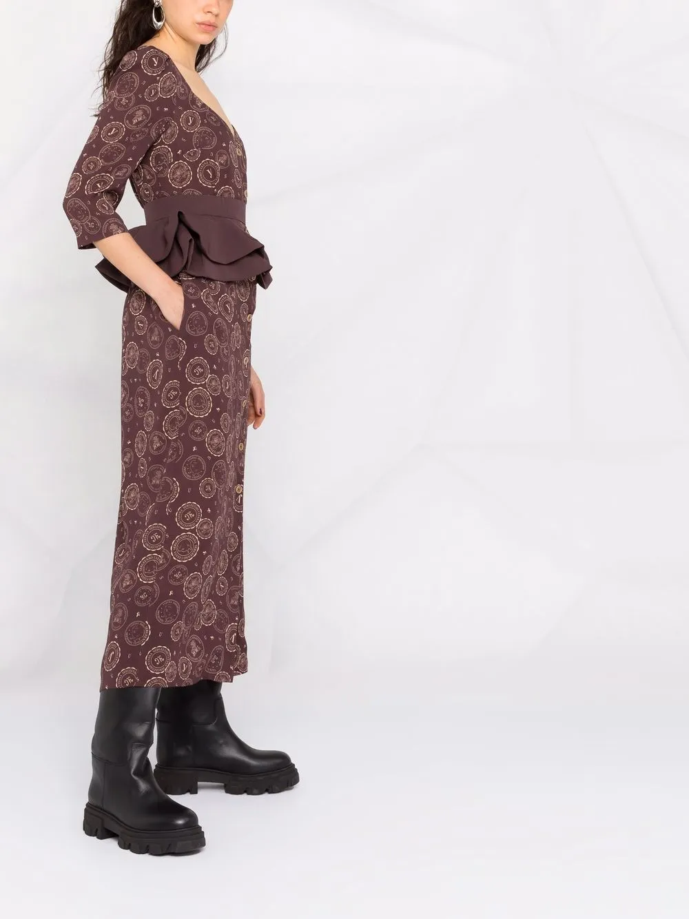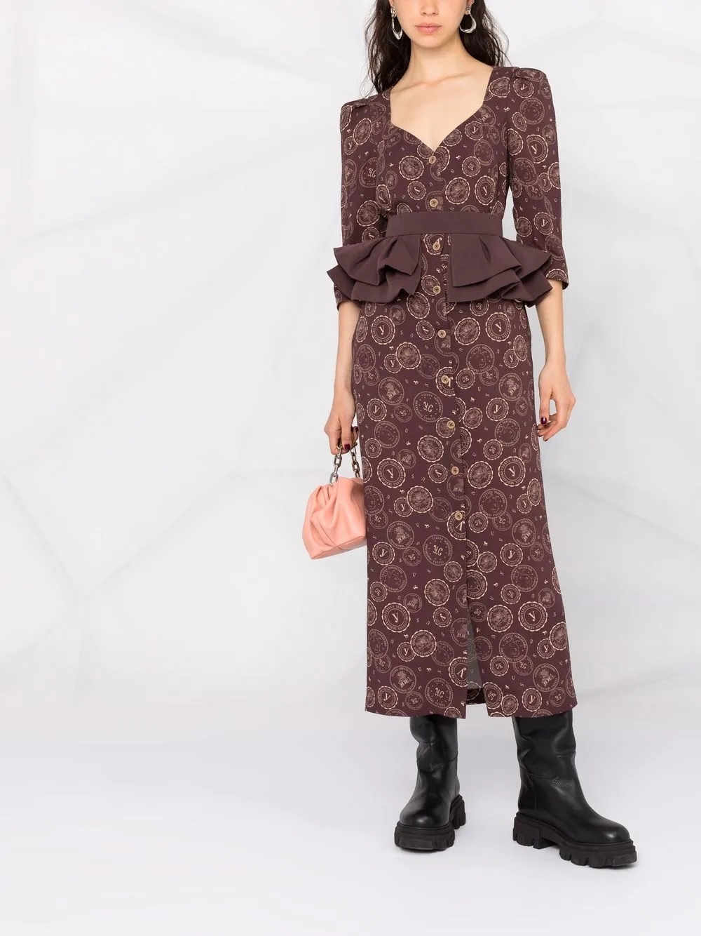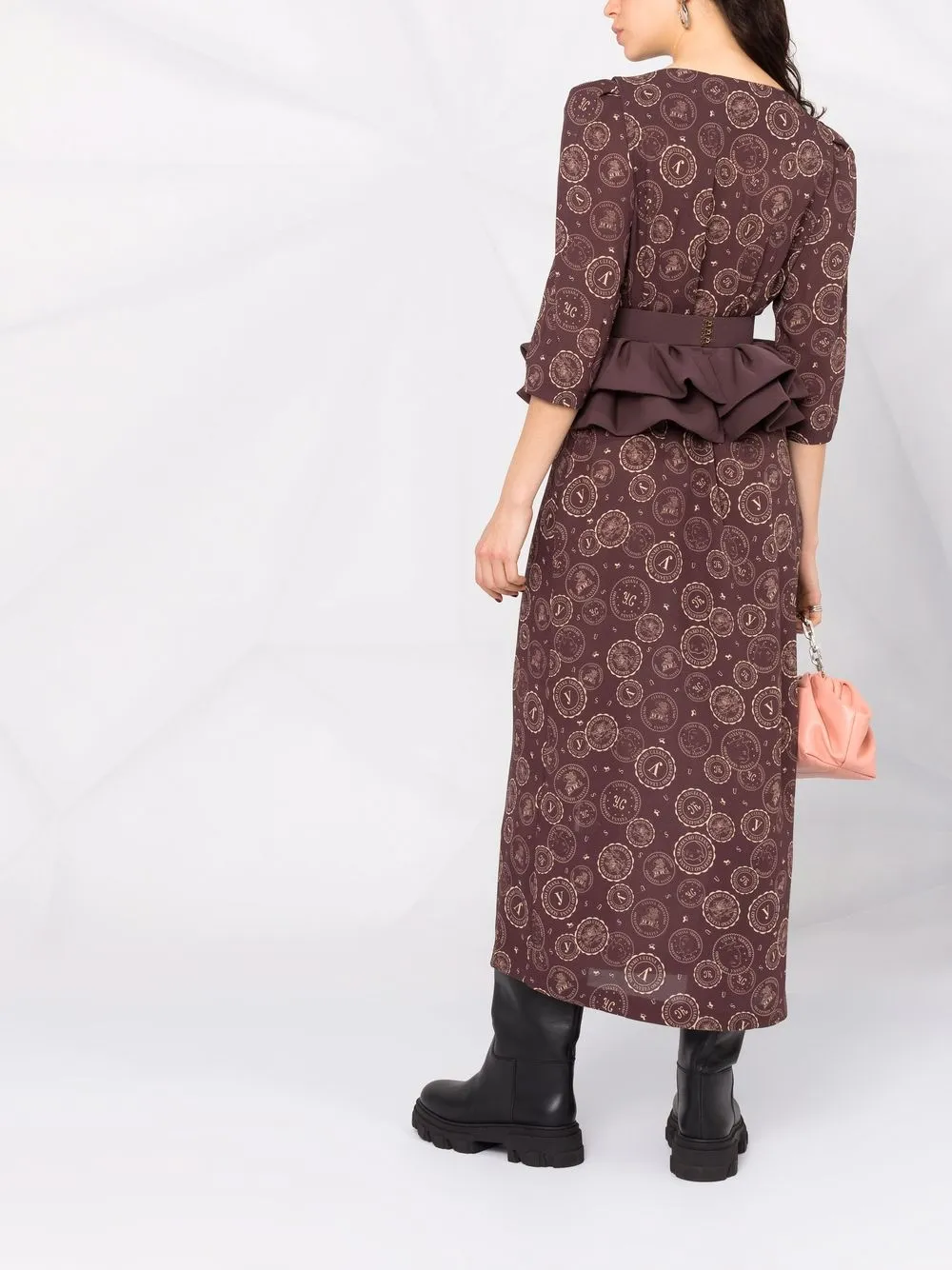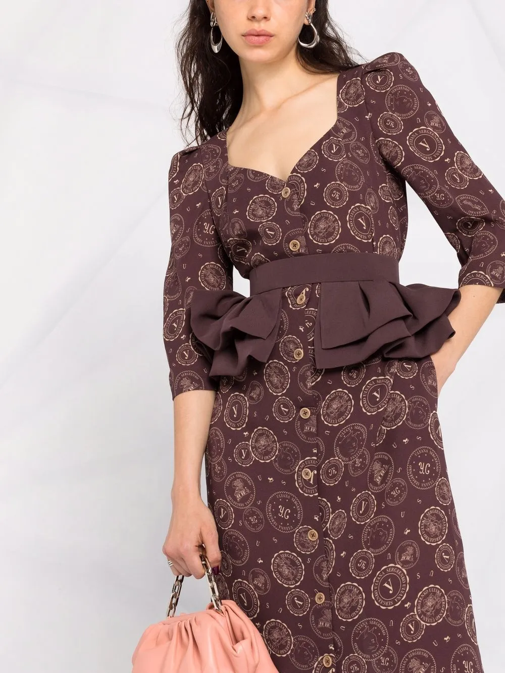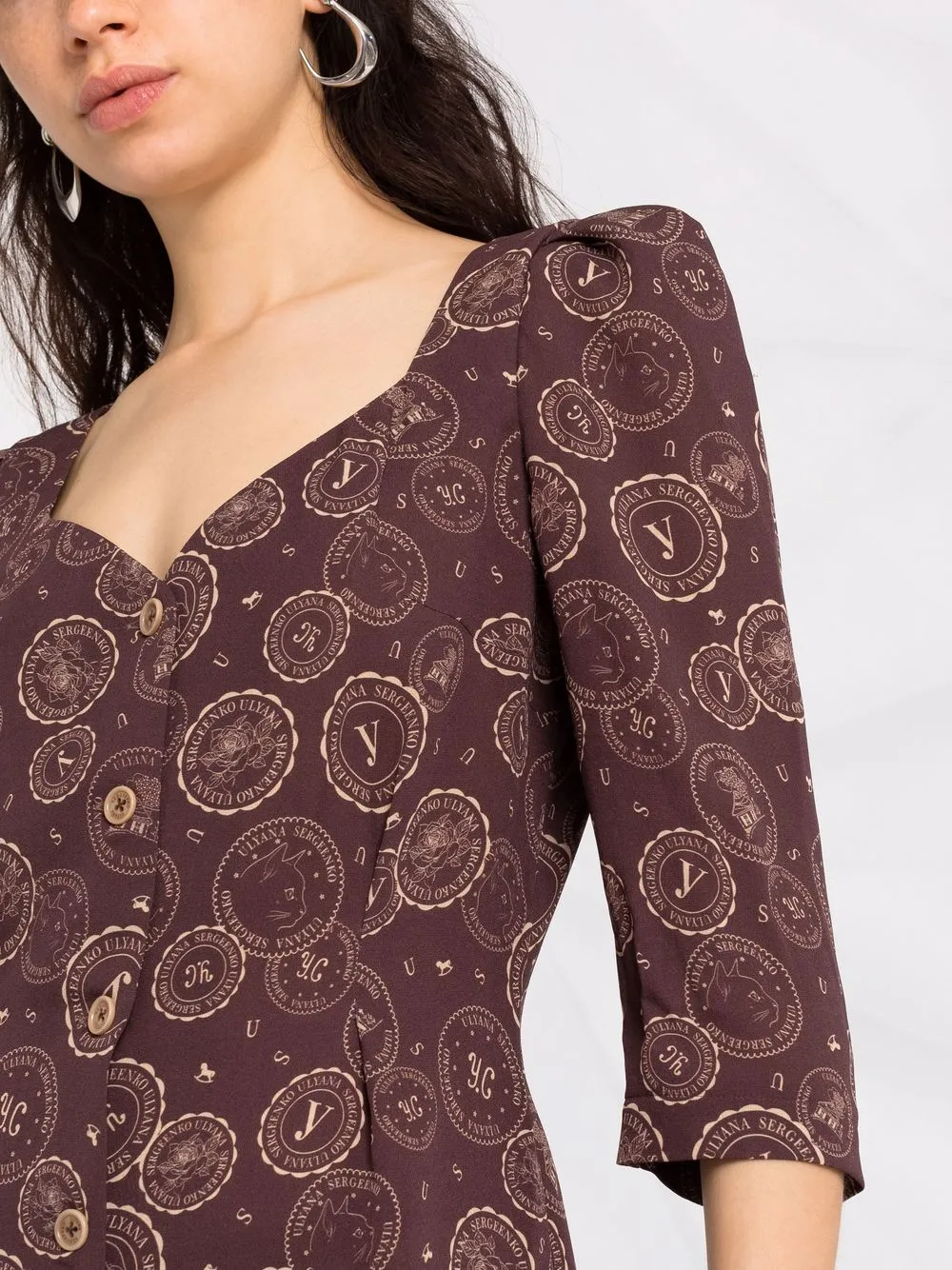 Платье с оборками и логотипом Ulyana Sergeenko, коричневый