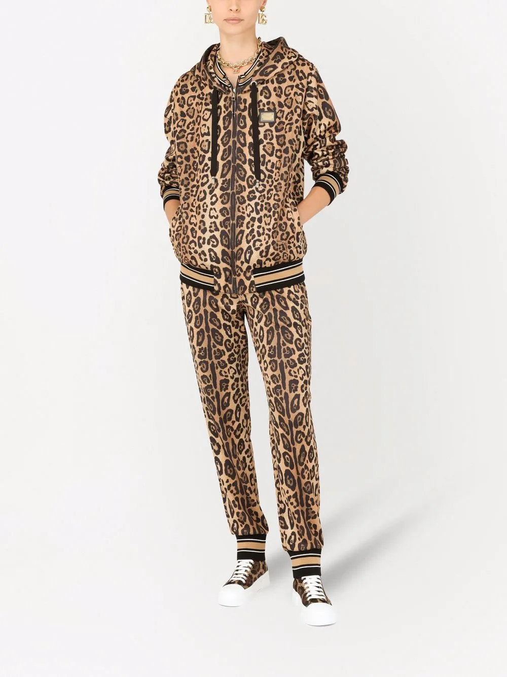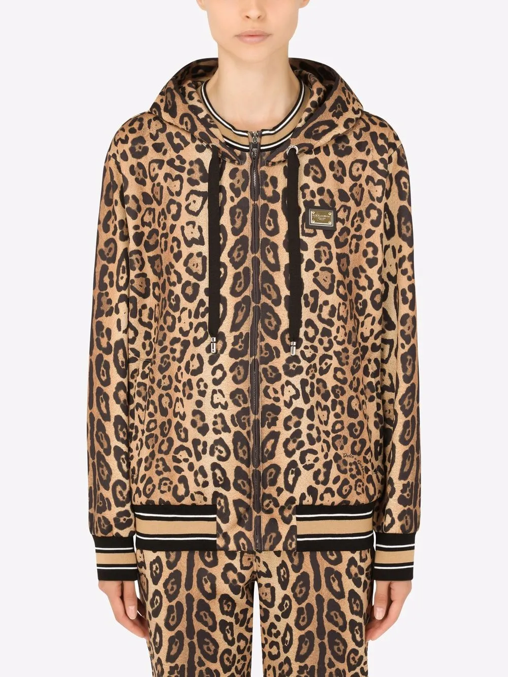 Худи на молнии с леопардовым принтом DOLCE & GABBANA, коричневый