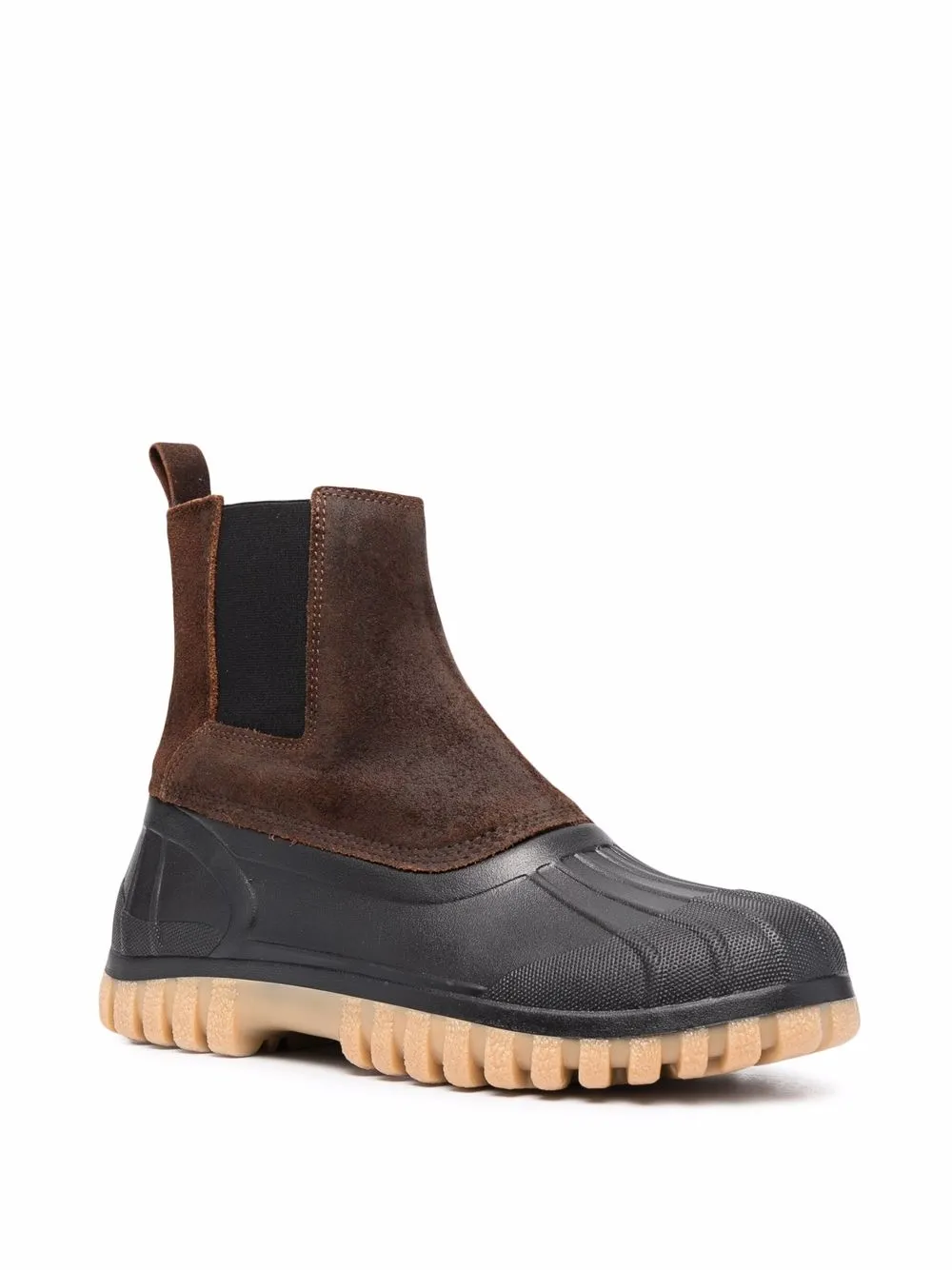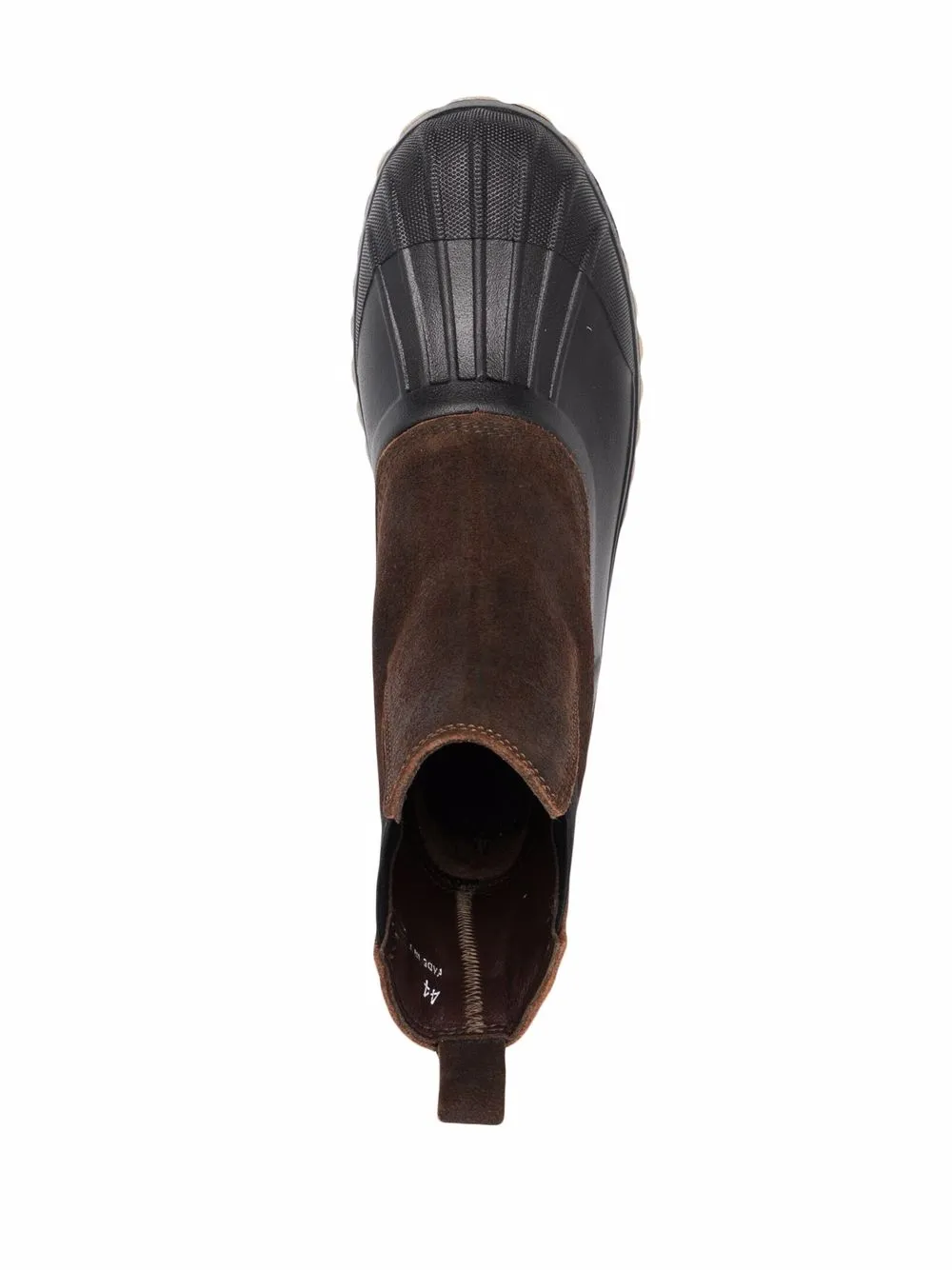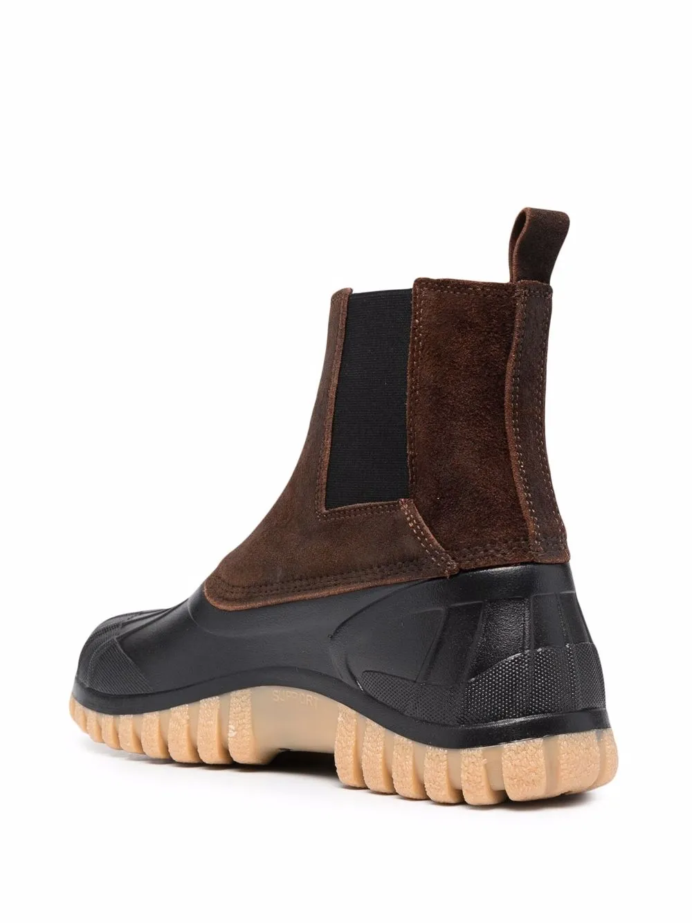 Вставки, миндалевидный носок, эластичные боковые панели, петля для подтягивания сзади, подошва на платформе и ребристая резиновая подошва.