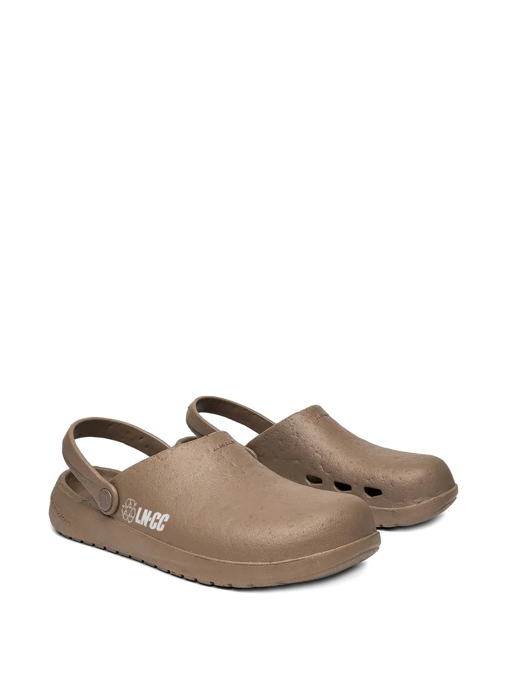 Коричневые туфли-лодочки без застежек, плоская подошва, тисненый логотип сзади, круглый носок